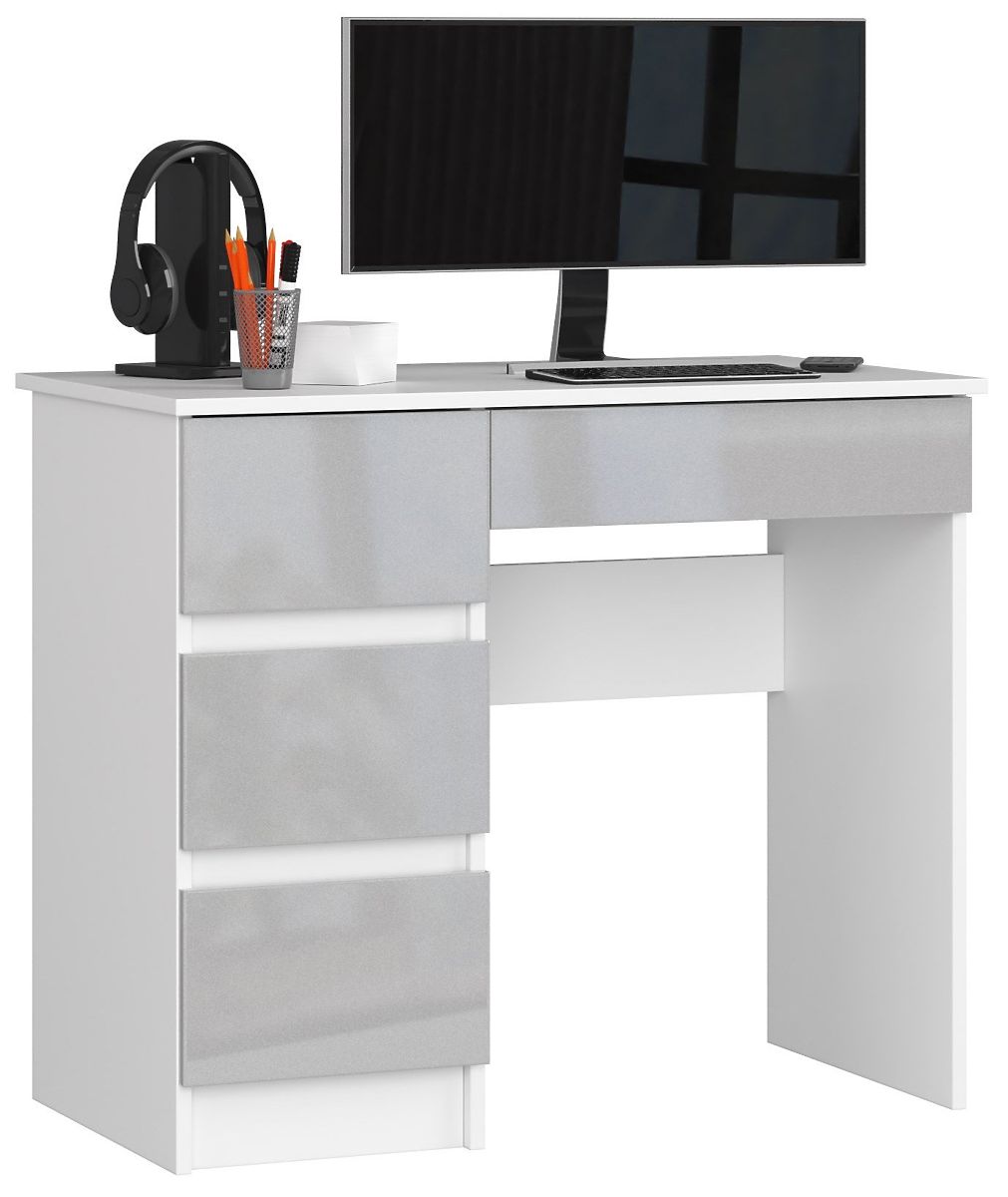 La scelta corretta di una scrivania è la chiave per uno studio e un lavoro efficaci e confortevoli. Per questi compiti, la scrivania per computer A-7 è sicuramente adatta! 3 spaziosi cassetti con una profondità di 38,5 cm posizionati sul lato sinistro sono perfetti come spazio di archiviazione per appunti o articoli di cancelleria, mentre il quarto cassetto estraibile sotto il piano è ideale per posizionare ulteriori attrezzature. La combinazione di colori bianco e metallico consente alla scrivania per computer di essere posizionata sia in ufficio che in una colorata stanza per bambini o ragazzi, dove costituirà un delicato complemento d'arredo.