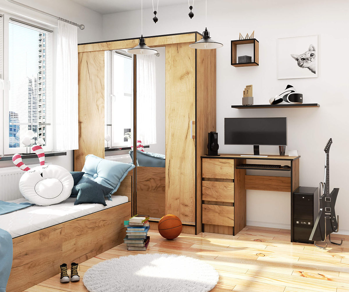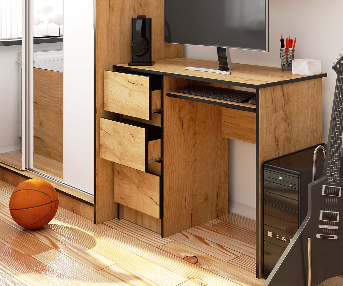 Una scrivania per computer può essere funzionale e allo stesso tempo avere un aspetto elegante. Un esempio è il mobile della nostra offerta: scrivania A-6 90 cm SINISTRA nel colore rovere craft, che sembra legno vero. Si distingue per la sua solida lavorazione e funzionalità. La scrivania è perfetta per il soggiorno, la cameretta dei bambini o l'ufficio, facilitando lo studio e il lavoro davanti allo schermo del computer.