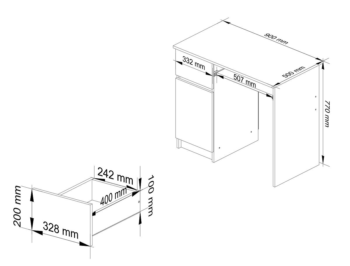 La scrivania Piksel è una piccola scrivania con un grande spazio per le cose più necessarie per la scuola. Grazie alle ante, può contenere molti quaderni e libri. La scrivania ha una lunghezza di 90 cm ed è perfetta per stanze piccole e medie.