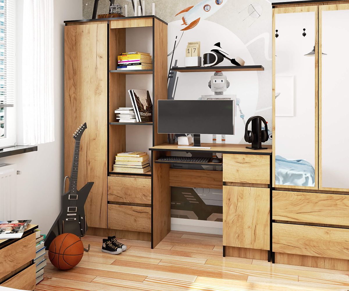 La scrivania Piksel è una piccola scrivania con un grande spazio per le cose essenziali per la scuola. Grazie alle ante, può contenere molti quaderni e libri. La scrivania ha una lunghezza di 90 cm ed è perfetta per stanze piccole e medie.