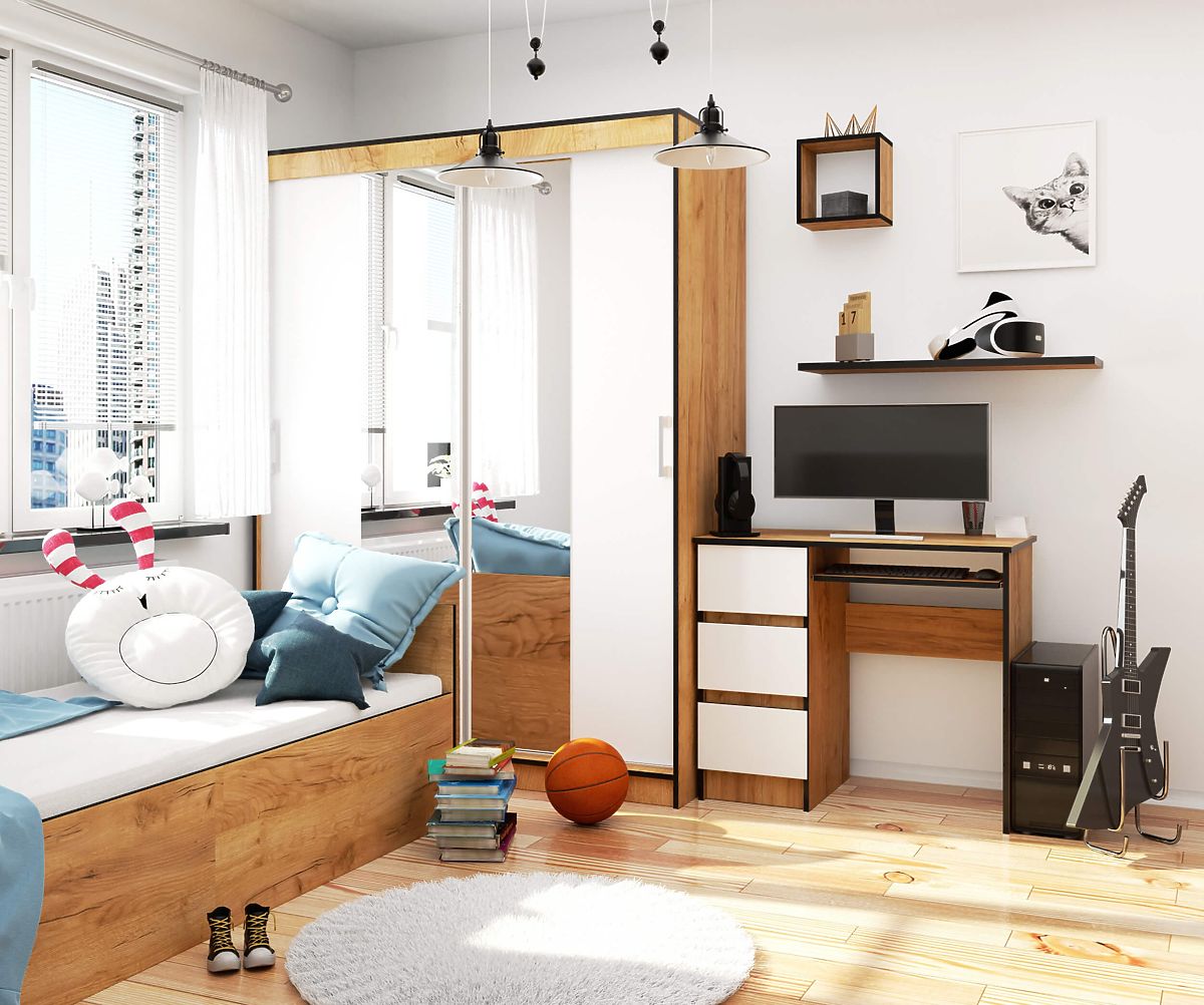 Una scrivania per computer può essere funzionale e allo stesso tempo avere un aspetto elegante. Un esempio è il mobile della nostra offerta: scrivania A-6 90 cm SINISTRA in colore rovere craft con frontali bianchi, che sembra vero legno. Si distingue per la sua solida lavorazione e funzionalità. La scrivania è ideale per il soggiorno, la cameretta dei bambini o l'ufficio, facilitando lo studio e il lavoro davanti allo schermo del computer.