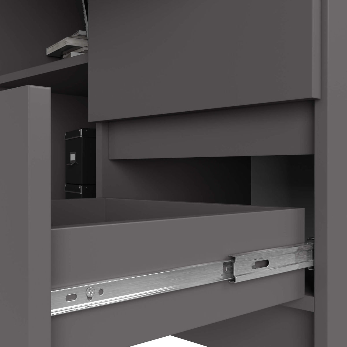 Scrivania angolare B16 in grigio grafite con scaffali e cassetti. .. altro
