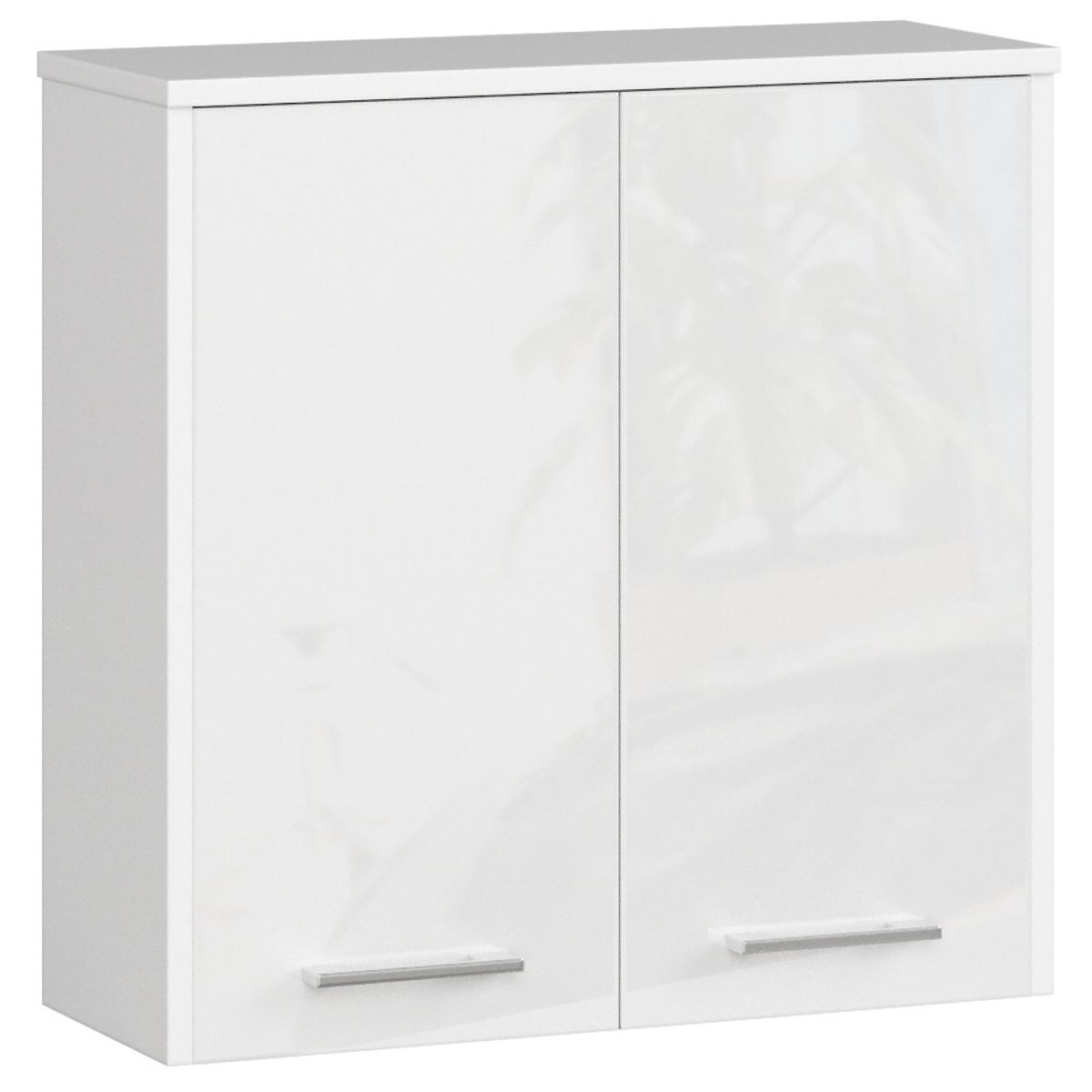 Armadietto sospeso bianco lucido con due porte per bagno. .. altro