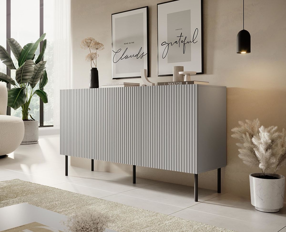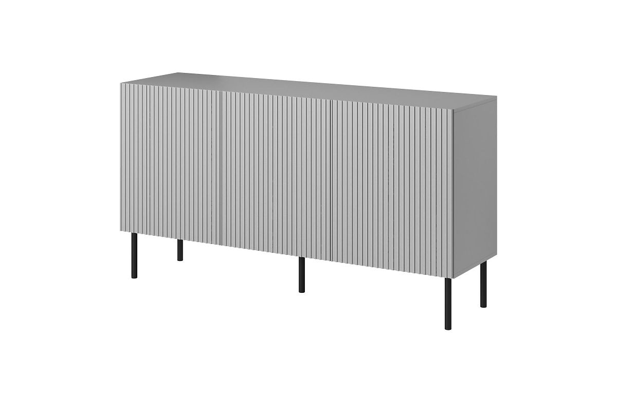 Cassettiera grigio chiaro con gambe nere in metallo. .. altro