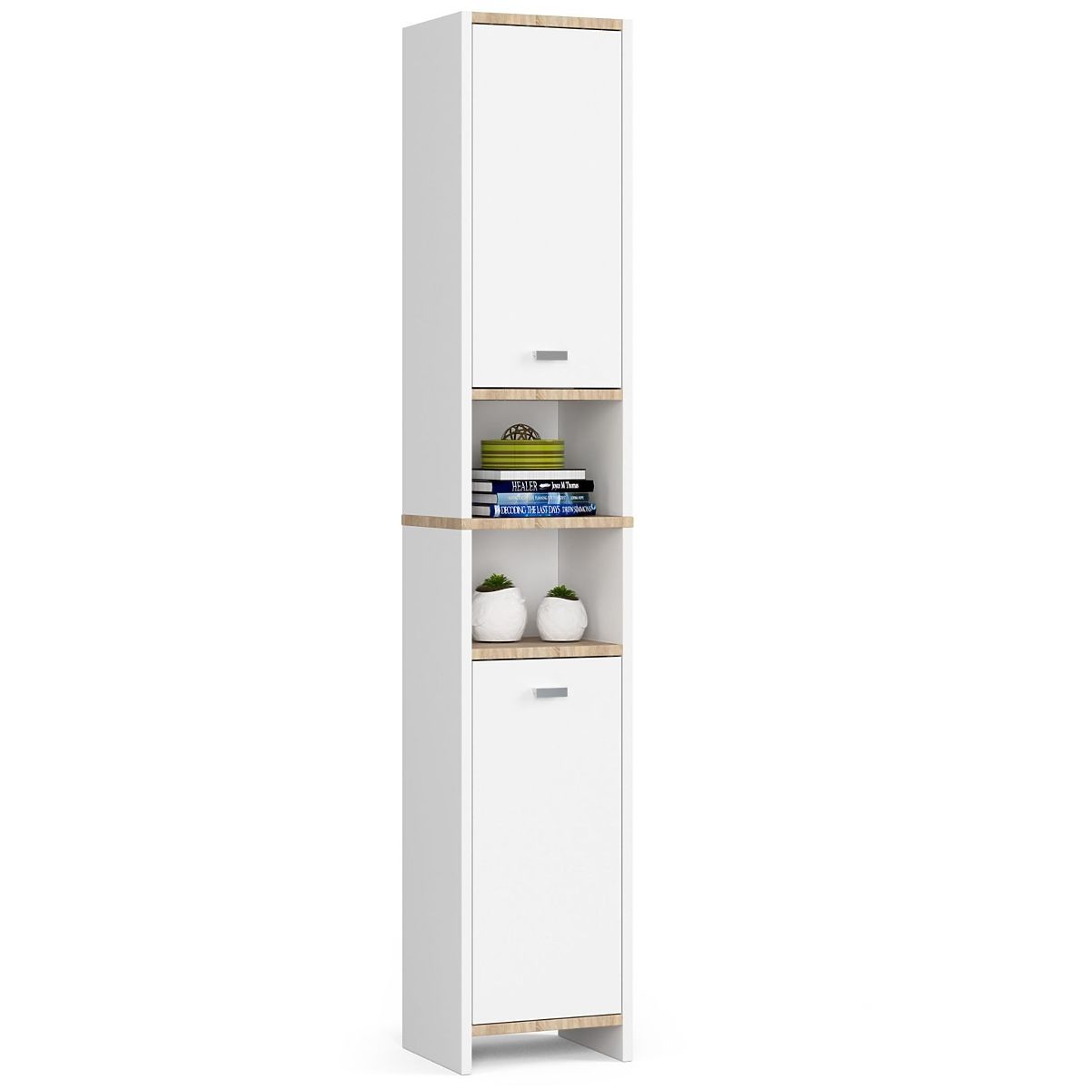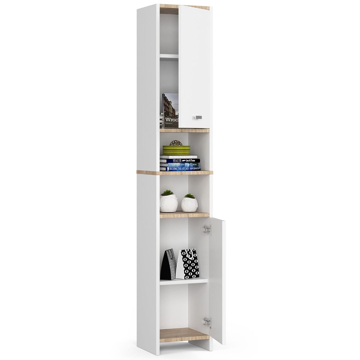Scaffale bianco con 4 ripiani e 2 porte, alto 180 cm. .. altro