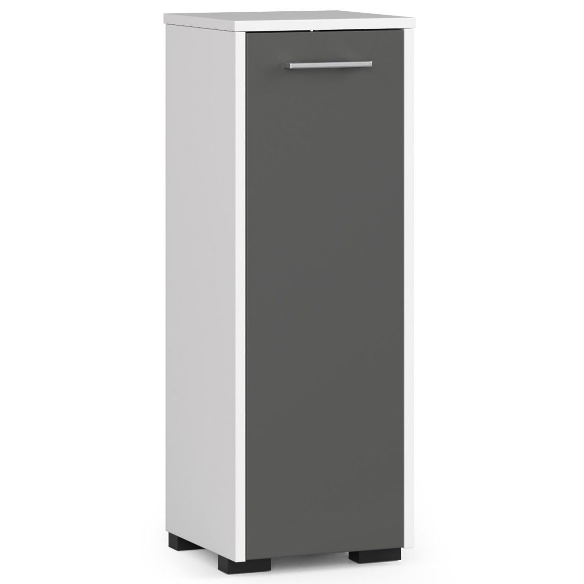 Il bagno è una stanza che dovrebbe essere arredata principalmente in modo funzionale. Una scelta interessante, ideale soprattutto per piccoli spazi, è l'armadietto da bagno a pavimento FIN S 30 cm. Il mobile combina due colori universali e senza tempo, bianco e grigio grafite. La semplicità e l'eleganza di questo design garantiscono che sia apprezzato sia dagli amanti dello stile moderno e scandinavo, sia da quelli rustici o classici. La solida costruzione si unisce in questo caso alla funzionalità e alla lavorazione accurata del prodotto.