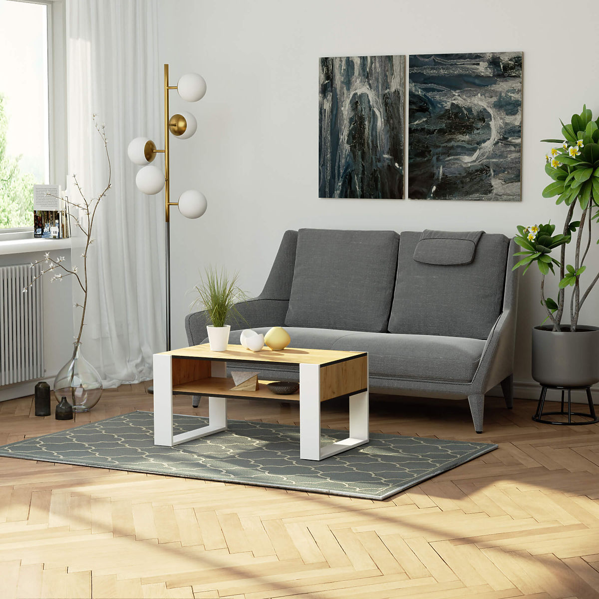 Il tavolino da caffè Domi rovere craft con gambe bianche combina un aspetto attraente ed estetico con funzionalità e versatilità d'uso. Grazie al colore bianco caldo, il tavolino si adatta perfettamente sia agli interni moderni che tradizionali, aumentando visivamente e illuminando la stanza. Le piccole dimensioni del mobile significano che il tavolino soddisfa perfettamente il suo scopo anche in una piccola stanza di un appartamento. Il tavolino è un mobile con destinazione d'uso versatile. Può essere utilizzato non solo per bere caffè, tè o bevande fredde, accogliere ospiti o rilassarsi quotidianamente. Il tavolino con piano funzionale è adatto anche per lavorare con il laptop, mentre l'ampia mensola posizionata in basso consente di riporre accessori per computer e materiali di lavoro. Il tavolino da caffè Domi rovere craft con gambe bianche è realizzato in pannello laminato resistente all'usura e impermeabile, il che consente di pulire con successo il piano del mobile anche con metodi umidi. I bordi del tavolino sono stati rifiniti con bordi ABS resistenti, il che aumenta ulteriormente la resistenza del mobile ai danni.