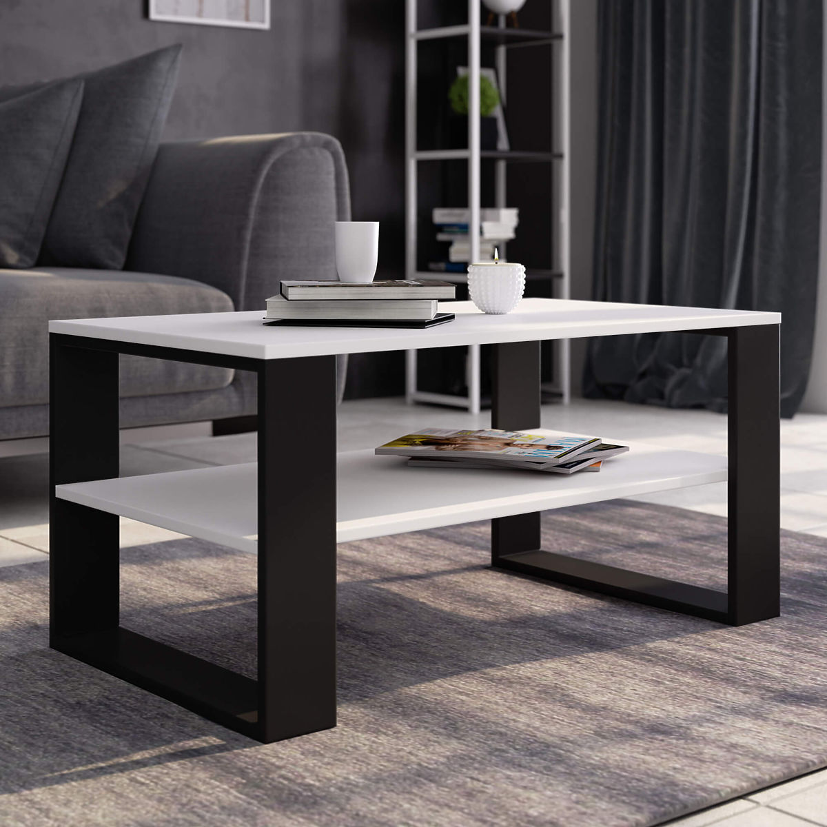 Il tavolino da caffè Alex bianco con gambe nere è una combinazione di aspetto attraente ed estetico con funzionalità e versatilità d'uso. Grazie al colore bianco, il tavolino si adatta perfettamente sia agli interni moderni che tradizionali, aumentando otticamente e illuminando la stanza. La piccola dimensione del mobile assicura che il tavolino soddisfi il suo scopo anche in una piccola stanza di un appartamento. Il tavolino è un mobile con destinazione versatile. Può essere utilizzato non solo per bere caffè, tè o bevande fredde, ricevere ospiti o rilassarsi quotidianamente. Il tavolino con piano funzionale è adatto anche per lavorare con il laptop, mentre l'ampia mensola posta in basso consente di posizionare accessori per computer e materiali di lavoro. Il tavolino da caffè bianco Alex con gambe nere è realizzato in pannello laminato resistente all'abrasione e all'acqua, il che consente di pulire con successo il piano del mobile anche a umido. I bordi del tavolino sono stati rifiniti con bordi ABS resistenti, il che aumenta ulteriormente la resistenza del mobile ai danni.