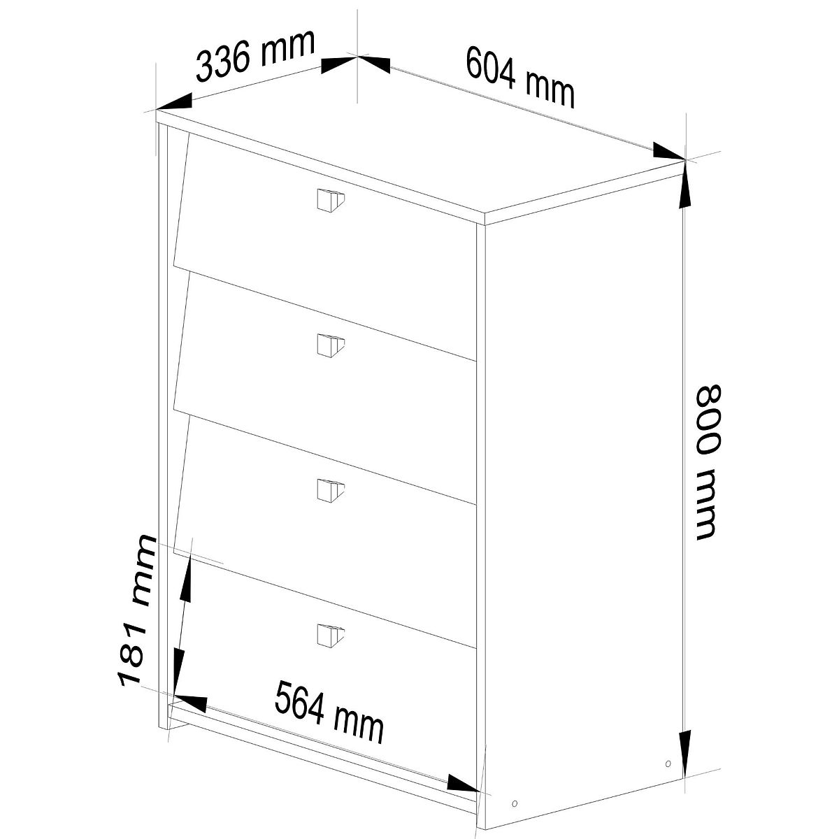 - I frontali della scarpiera NON sono impostati ad angolo retto rispetto alla base del mobile – l'inclinazione dei frontali è una caratteristica del prodotto e non è soggetta a reclami e resi.
