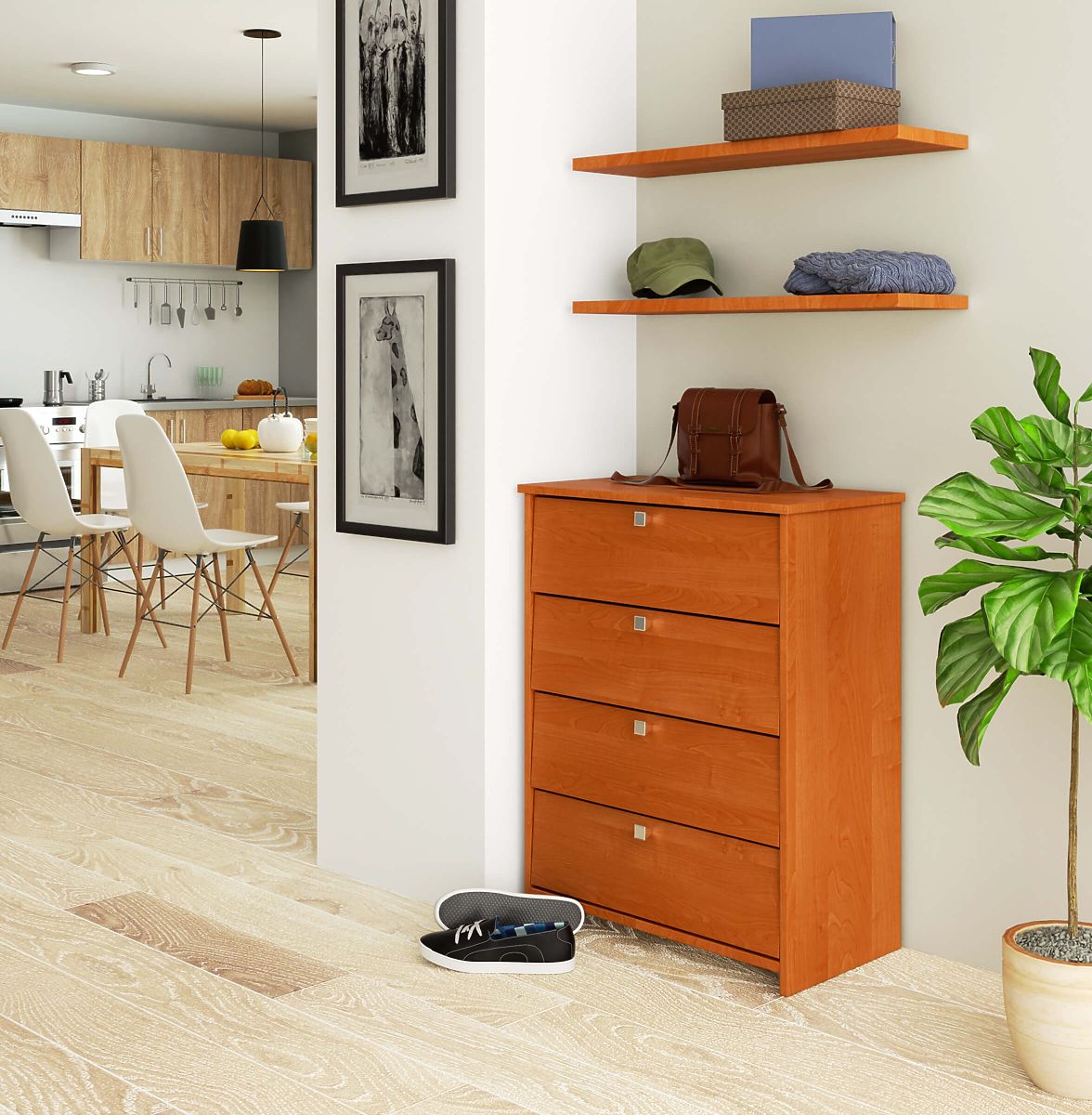 La scarpiera in colore rubino ontano è estetica e funzionale. Questo mobile si adatta sia a un ingresso grande che a uno più piccolo. La scarpiera ha quattro ampi ripiani con ante a ribalta e maniglie in tonalità satinata. Nella scarpiera possono essere riposte scarpe di tutte le dimensioni e anche accessori per la pulizia delle calzature. L'arredo dell'ingresso con la scarpiera facilita il mantenimento dell'ordine. Il mobile è così elegante che si adatta anche agli interni più raffinati dell'ingresso, indipendentemente dallo stile in cui è arredata la stanza. Il colore del mobile è universale, quindi la scarpiera si abbina bene anche con un appendiabiti o un armadio di un'altra tonalità. La scarpiera è realizzata in pannello laminato, molto resistente all'abrasione e ai danni meccanici. I bordi del mobile sono rifiniti con un bordo ABS estetico e resistente. La scarpiera può essere pulita con un panno umido, facilitando il mantenimento del mobile in perfetta pulizia.