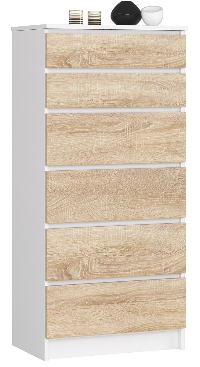 Comò con 6 cassetti in bianco e rovere Sonoma, resistente e facile da montare. .. altro