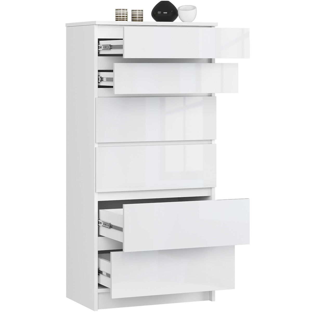 Comò bianco lucido con 6 cassetti e dimensioni 60x130x40 cm. .. altro