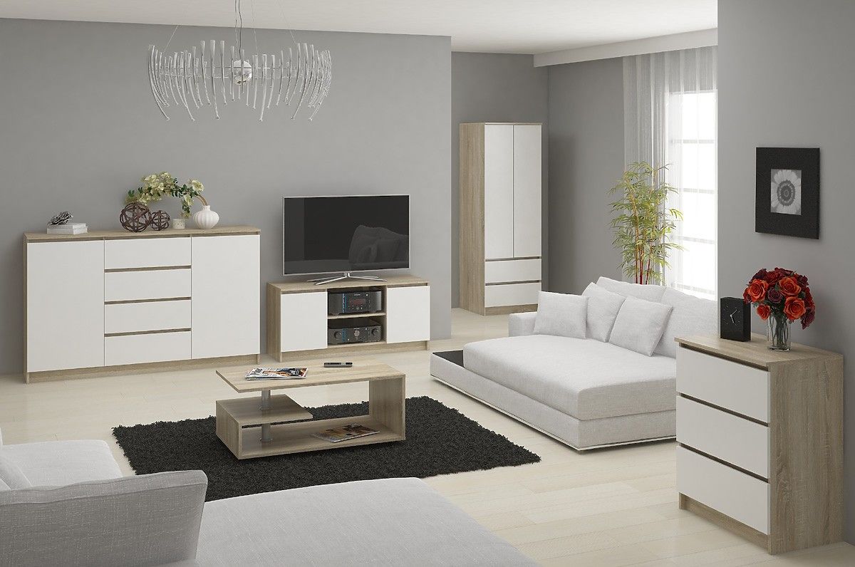 Un elemento indispensabile in ogni casa che consente di riporre molti accessori, vestiti o persino scarpe e film su CD. Utilizzato in vari modi, cos'è? Ovviamente un comò, meglio se spazioso e allo stesso tempo compatto. Abbiamo proprio un'offerta del genere per te. Il modello K 160 cm ha la lunghezza di cui abbiamo appena parlato. È realizzato in pannello laminato con uno spessore di 16 millimetri, che garantisce un'elevata resistenza ai danni meccanici. Un ulteriore vantaggio e garanzia di durata è l'uso di bordi ABS sui bordi. L'interno del comò contiene 6 cassetti con grande capacità per tutte le tue cose.