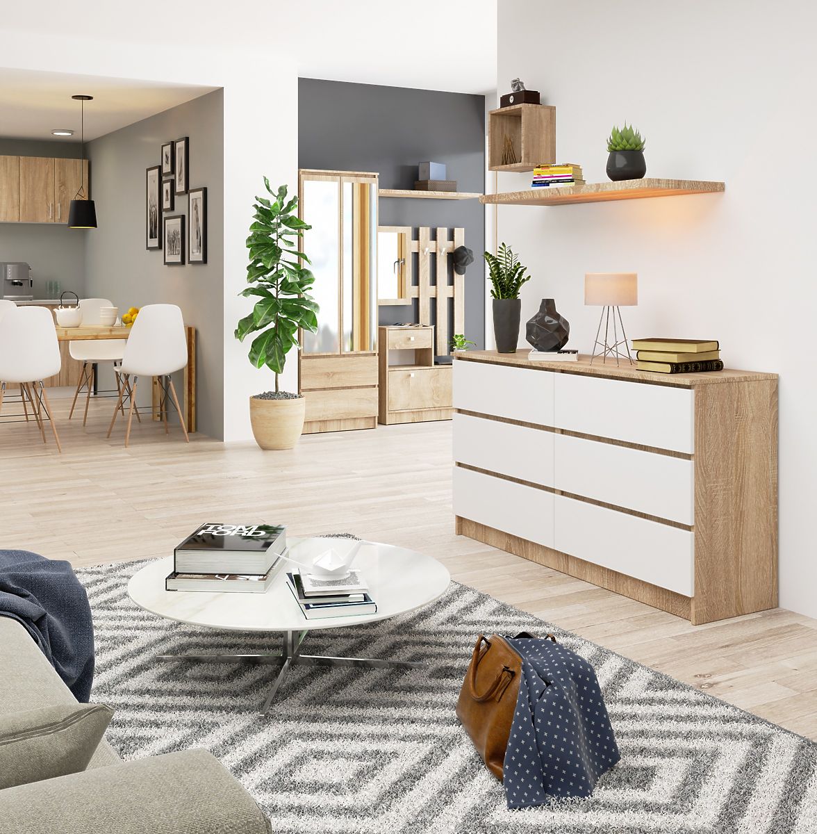 Comò K140 con sei cassetti in rovere sonoma e bianco. .. altro