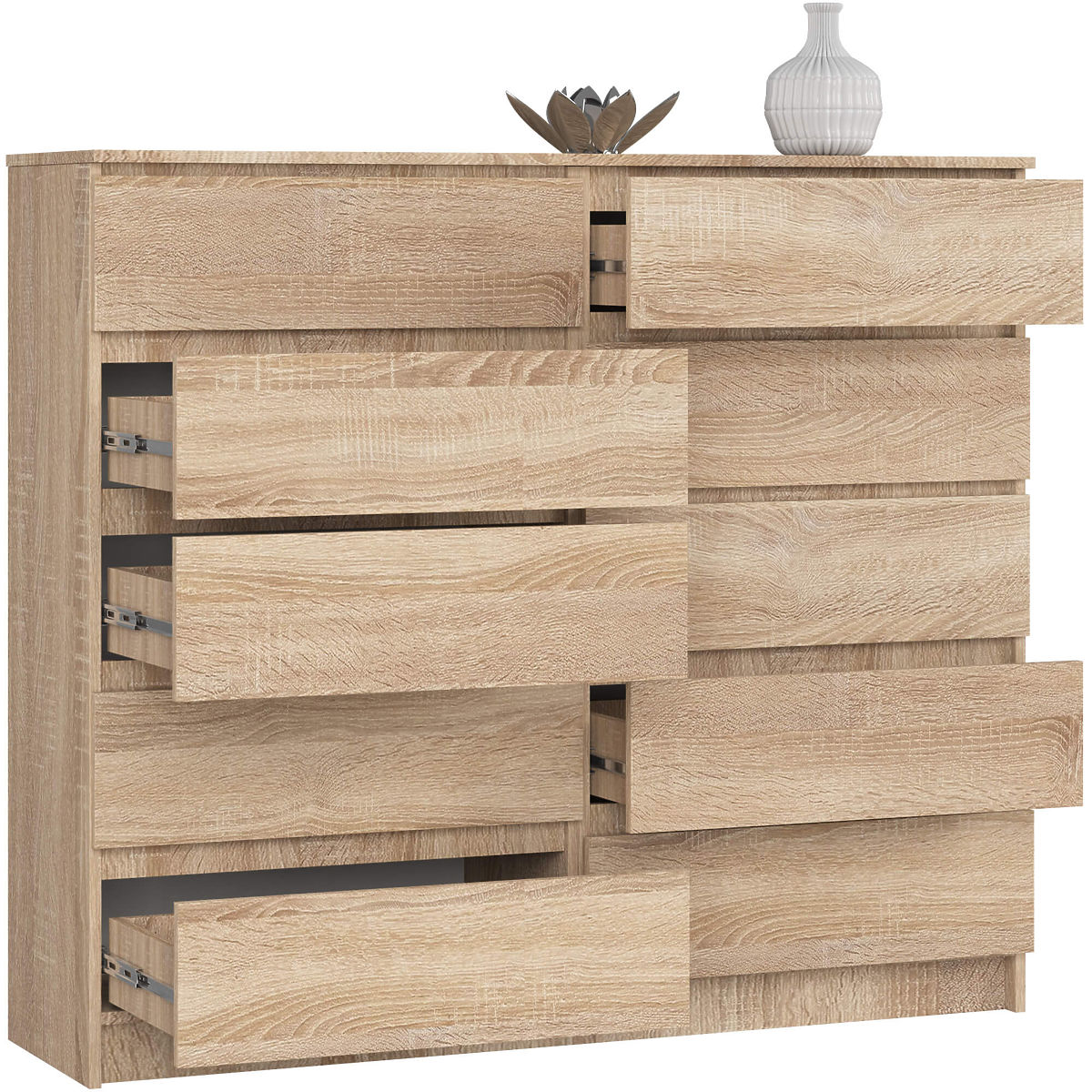 I mobili solidi della nostra offerta sono apprezzati dai clienti che preferiscono il minimalismo classico. La credenza K140 presentata colpisce per la sua forma semplice, il colore universale (rovere sonoma) e le soluzioni pratiche. Ci concentriamo principalmente sulla qualità, offrendo mobili realizzati con materiali resistenti e di qualità. Il nostro modello consigliato, dotato di dieci cassetti, si adatta perfettamente al soggiorno, alla camera da letto o all'ufficio, ma anche a molte altre stanze che si desidera arredare in modo moderno e funzionale. La buona qualità a un prezzo basso soddisferà sicuramente gli amanti delle soluzioni moderne. Consigliamo anche di scoprire altri pezzi di arredamento di questa collezione: tutte le credenze si distinguono per la lavorazione solida e i materiali resistenti con cui sono realizzate.