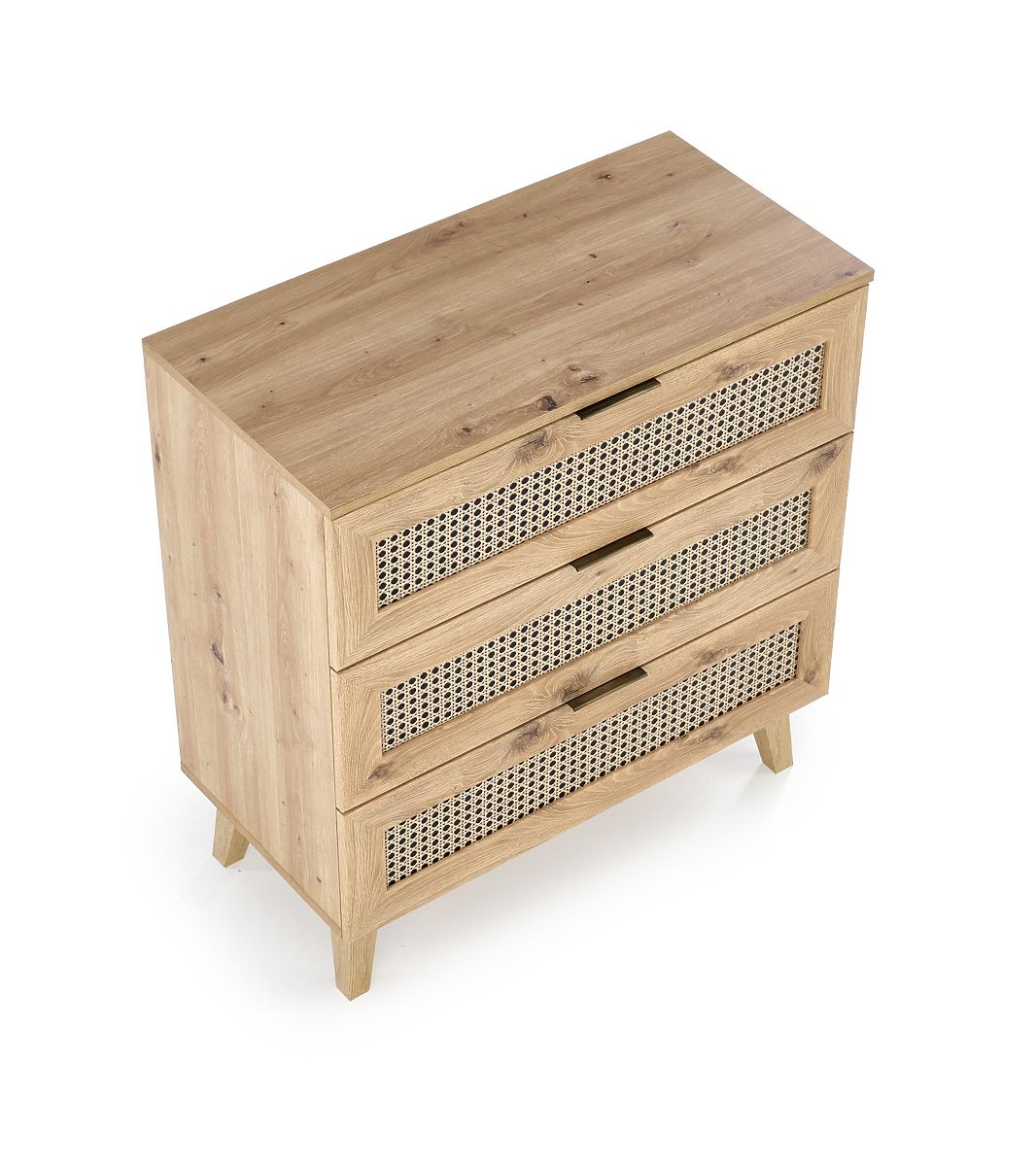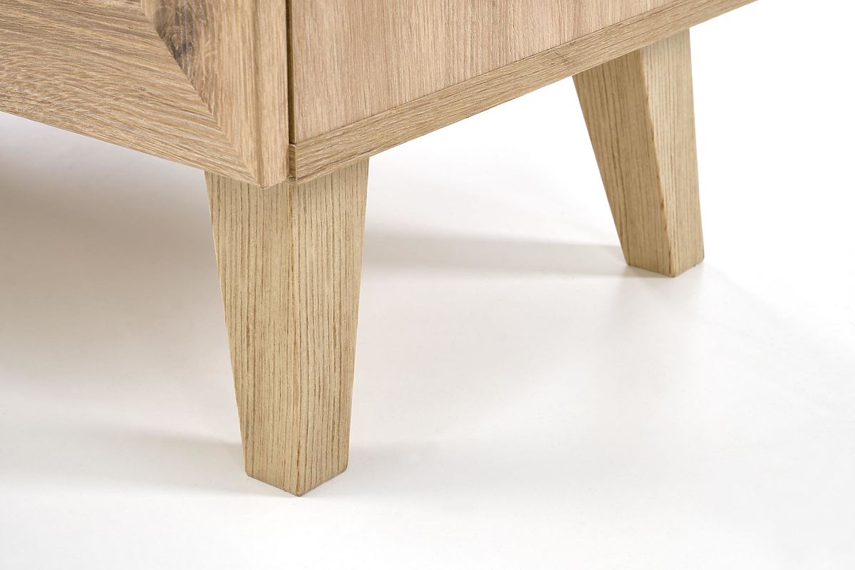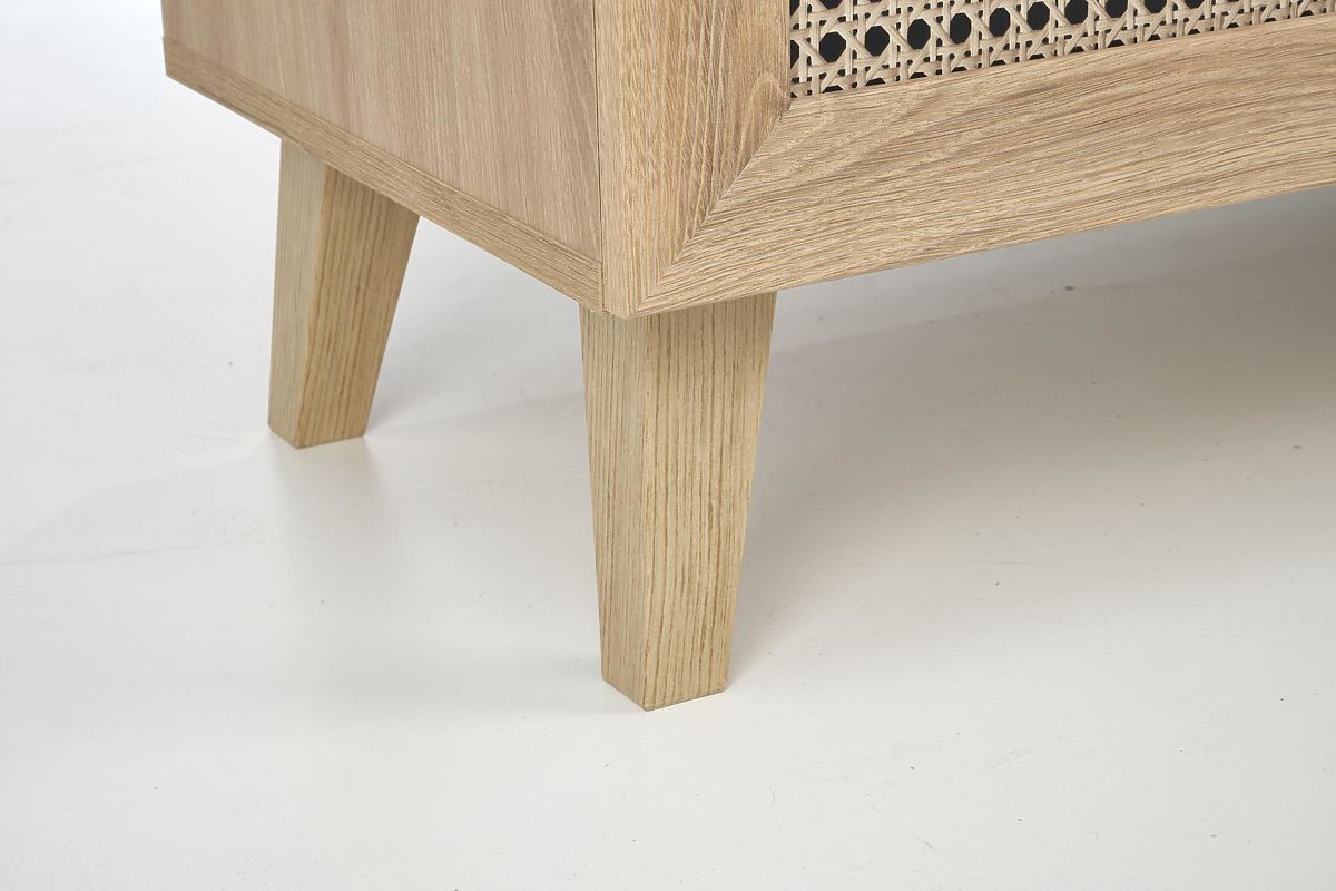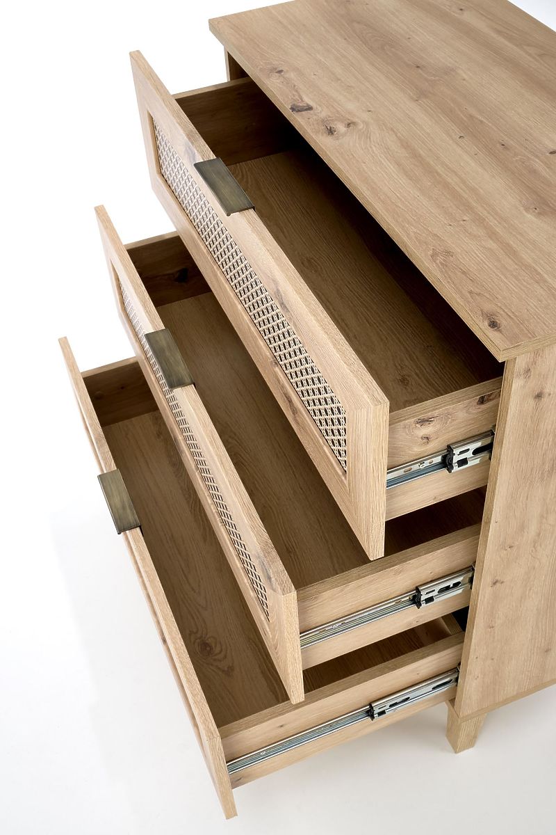 Il decoro in rovere artisan insieme agli inserti alla moda con motivo a treccia viennese conferisce alla cassettiera un tocco boho unico che cattura immediatamente l'attenzione.