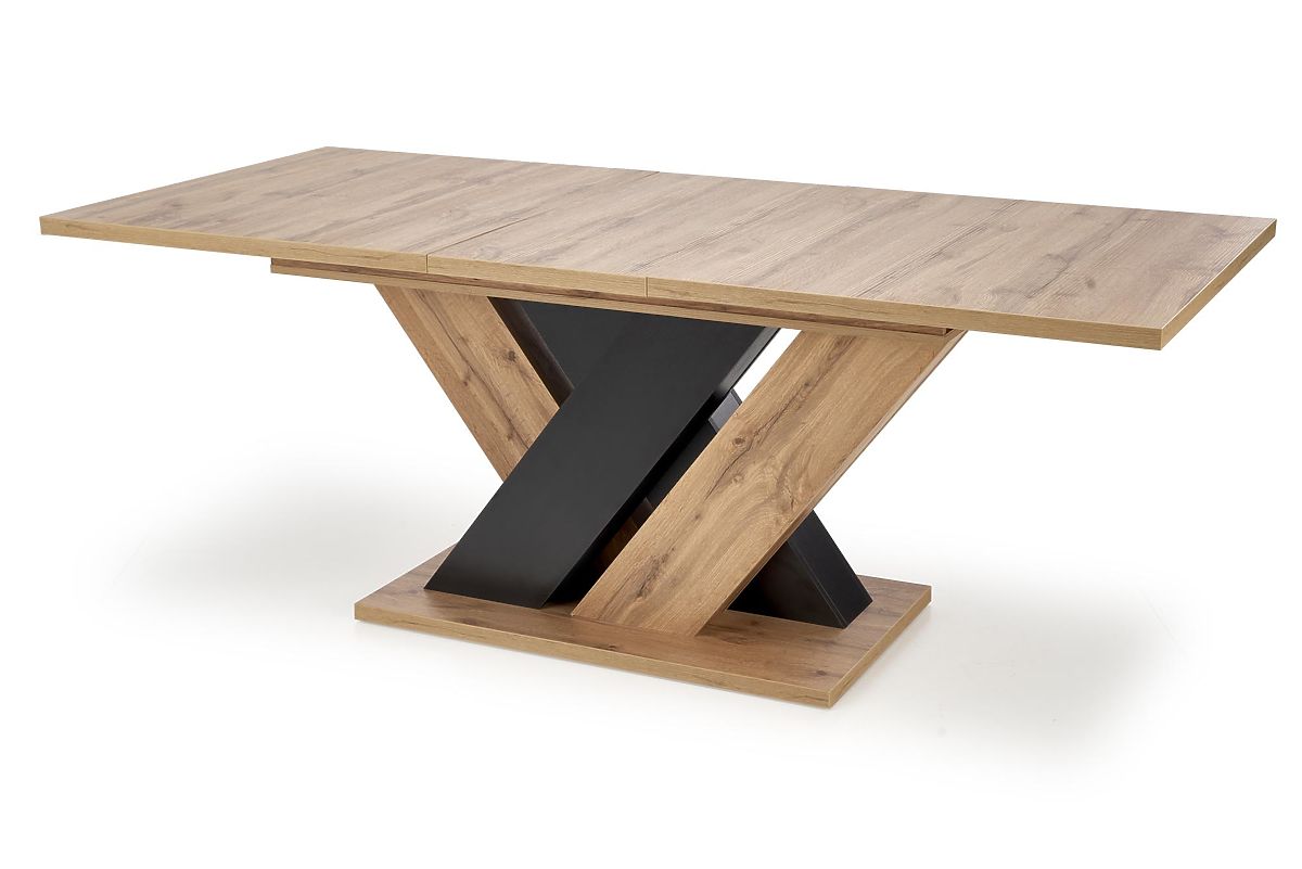 Tavolo da pranzo estensibile con gambe a forma di X in rovere wotan e nero. .. altro