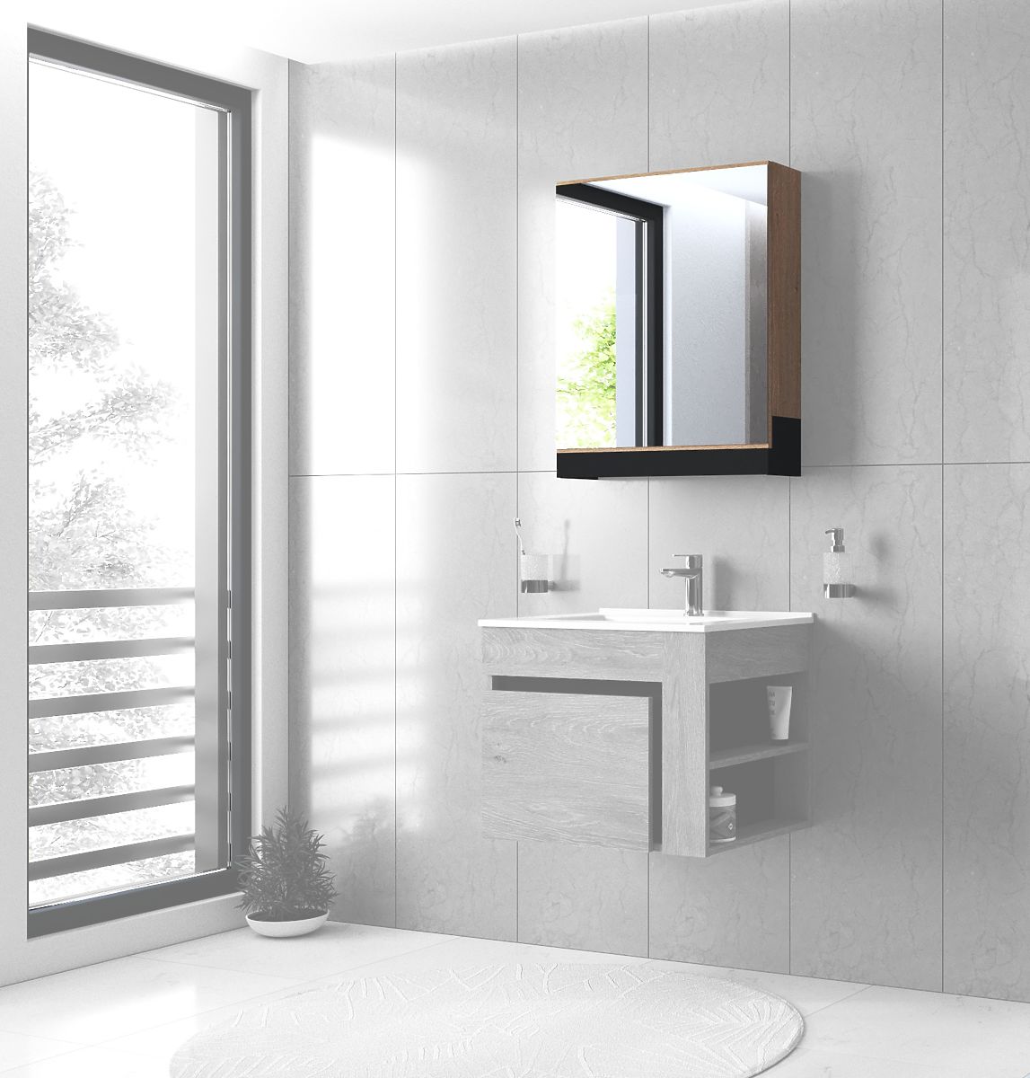 L'armadietto sotto lavabo DUESA è la scelta ideale per ogni bagno moderno, dove l'accento è posto su funzionalità, ordine e design naturale. Grazie alle sue dimensioni compatte, si adatta perfettamente alla maggior parte dei lavabi di larghezza 60 cm e offre uno spazio di archiviazione pratico per le necessità quotidiane. La disposizione interna combina un cassetto e mensole aperte, che consentono di riporre in modo ordinato cosmetici, asciugamani o detergenti. L'armadietto è realizzato in legno di qualità con finitura rovere bianco, che conferisce al bagno un aspetto piacevole e naturale, garantendo al contempo una lunga durata anche con l'uso quotidiano.