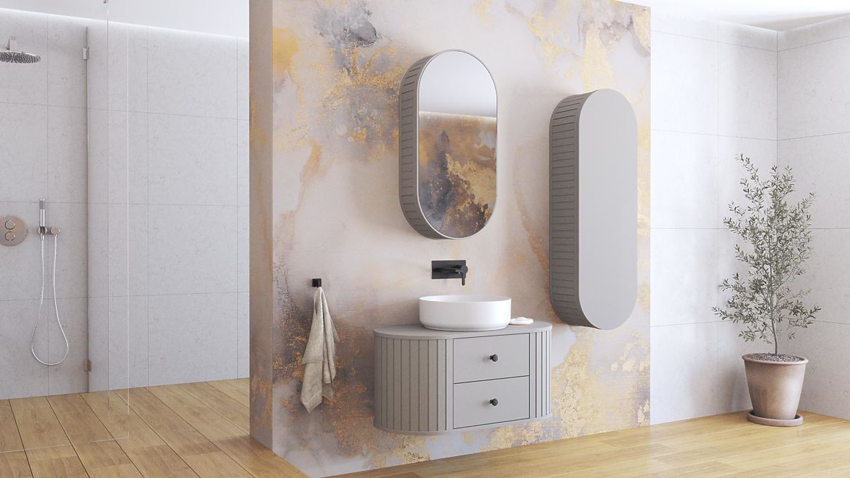 Armadietto a specchio in MDF laminato e cashmere opaco. .. altro