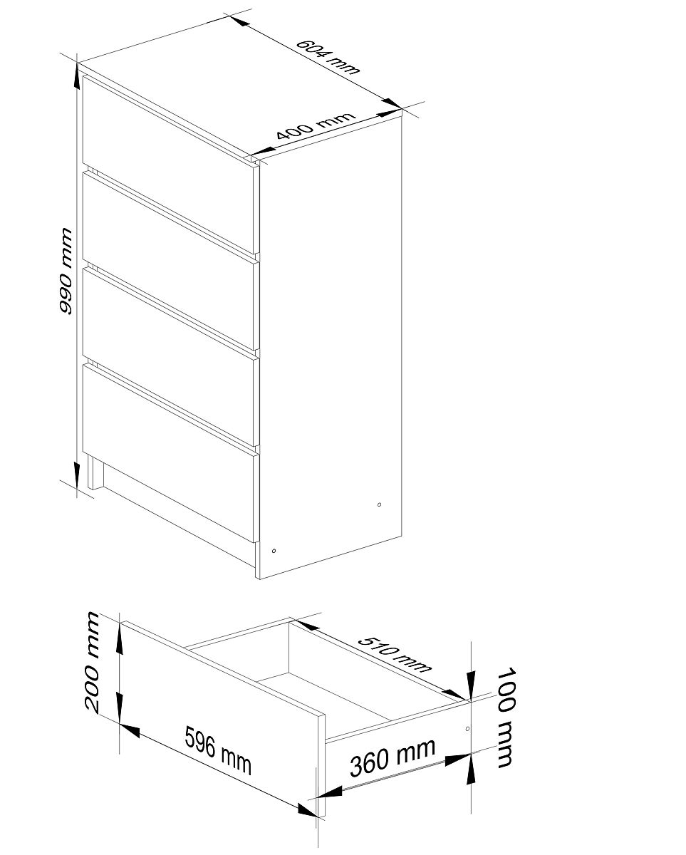 COMÒ K60 4 CASSETTI Realizzato in pannello laminato da 16 mm resistente all'abrasione.