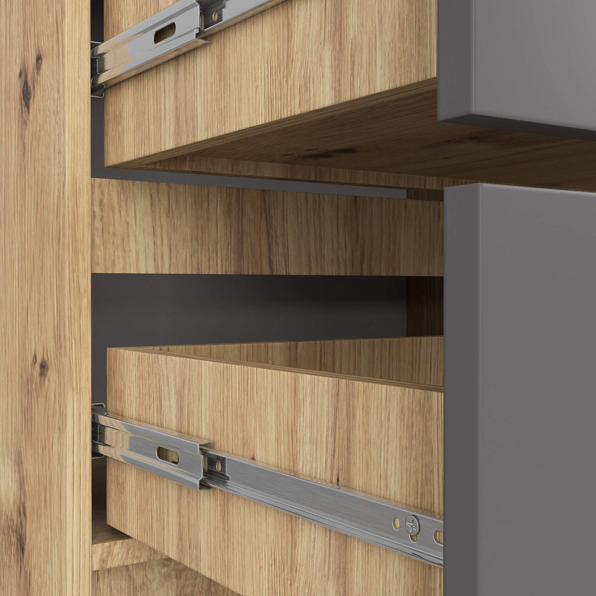 - I cassetti scorrono su guide a sfere in metallo - Bordi rivestiti con bordo ABS che garantisce alta protezione contro i danni
