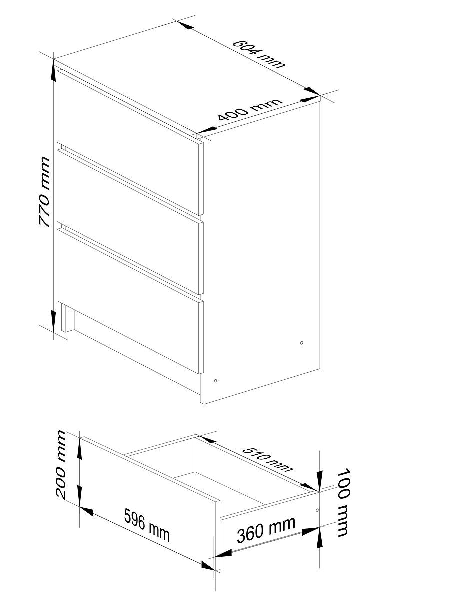 - I cassetti scorrono su guide a sfera metalliche- Bordi rivestiti con bordo ABS che garantisce un'elevata protezione contro i danni