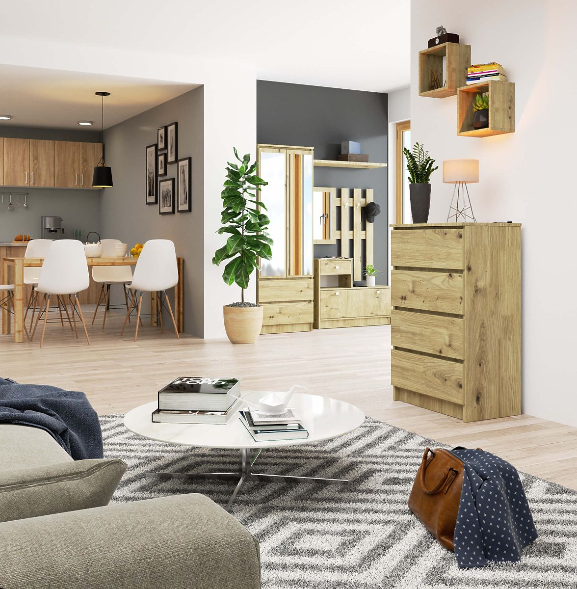 Credenza con 4 cassetti in rovere Artisan, resistente e facile da montare. .. altro