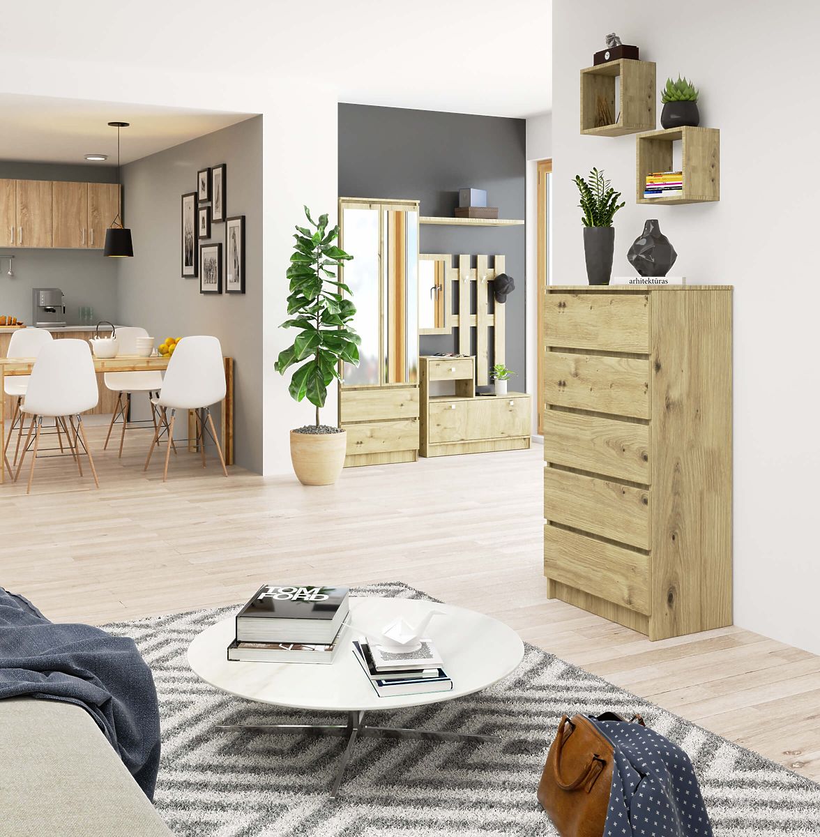 CREDENZA K60 CON 5 CASSETTI Realizzata in pannello laminato da 16 mm resistente all'abrasione.
