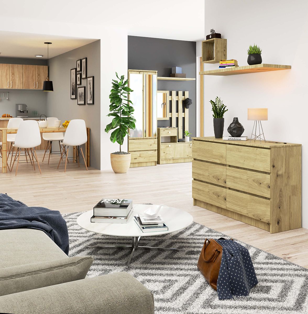 Comò in rovere Artisan con 6 cassetti e bordi ABS. .. altro