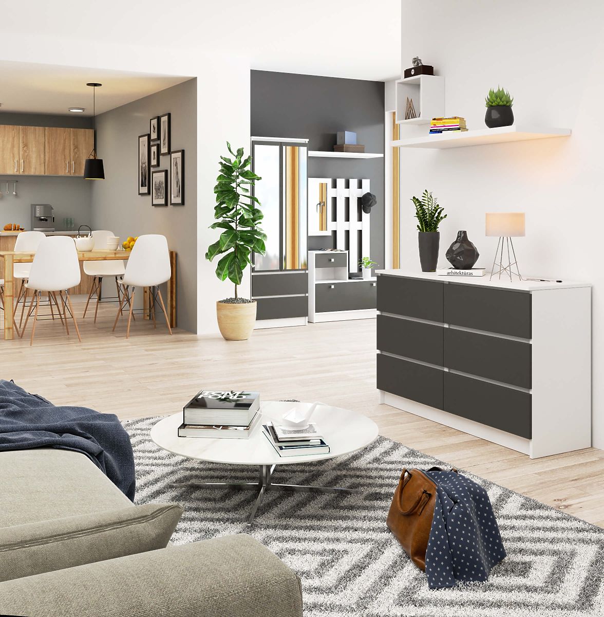 Credenza con 6 cassetti in bianco e grigio grafite. .. altro