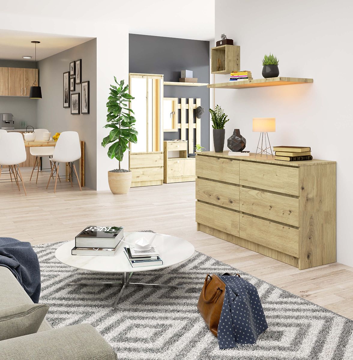 Comò in rovere Artisan con 6 cassetti e bordi ABS. .. altro