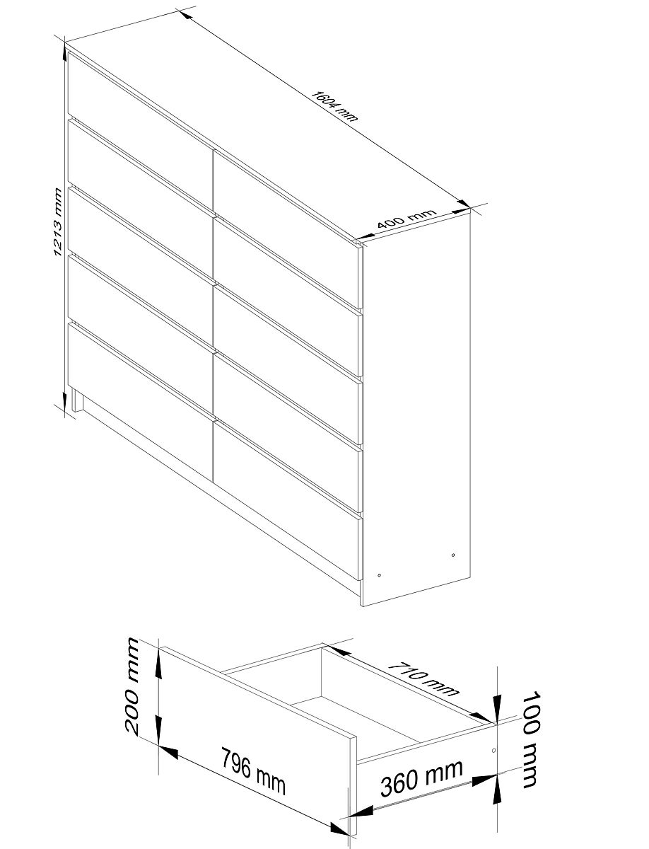 COMÒ K 160cm 10 CASSETTI Realizzato in pannello laminato da 16mm resistente all'usura.