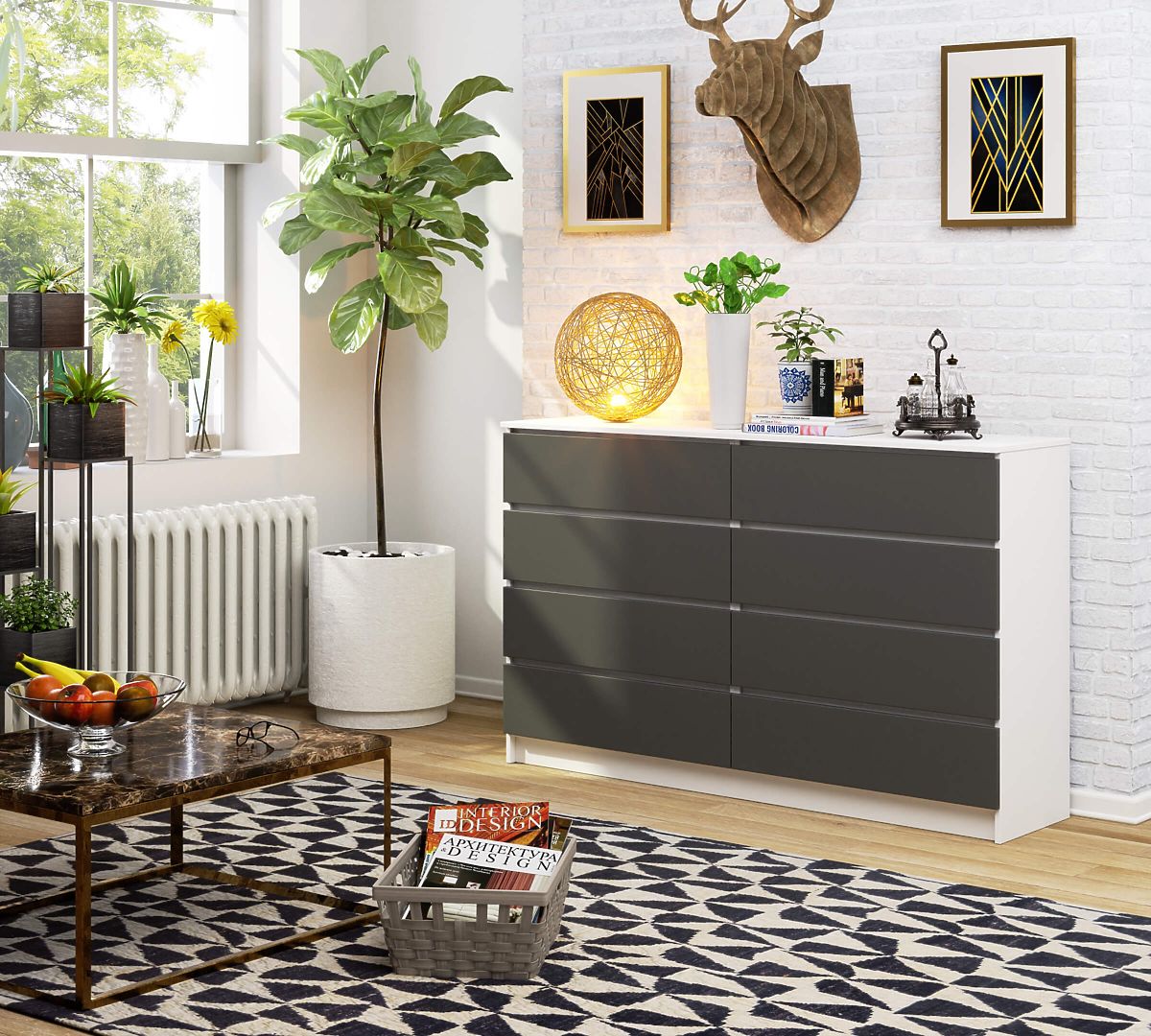 Comò con 8 cassetti in bianco e grigio grafite. .. altro
