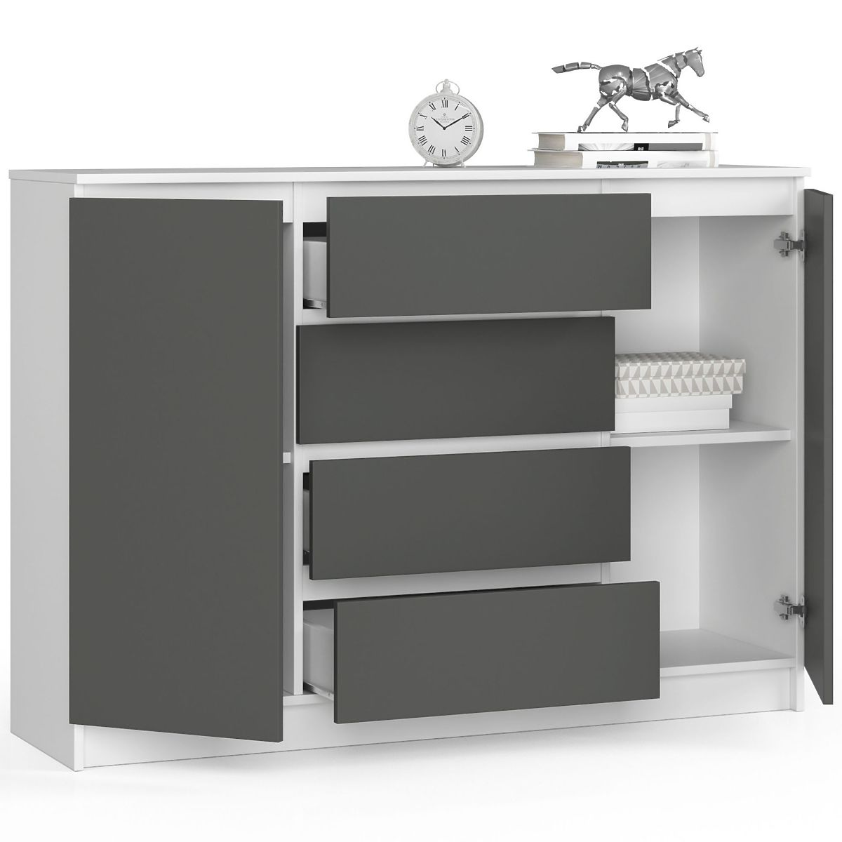 Credenza con 2 ante e 4 cassetti in bianco e grigio grafite. .. altro