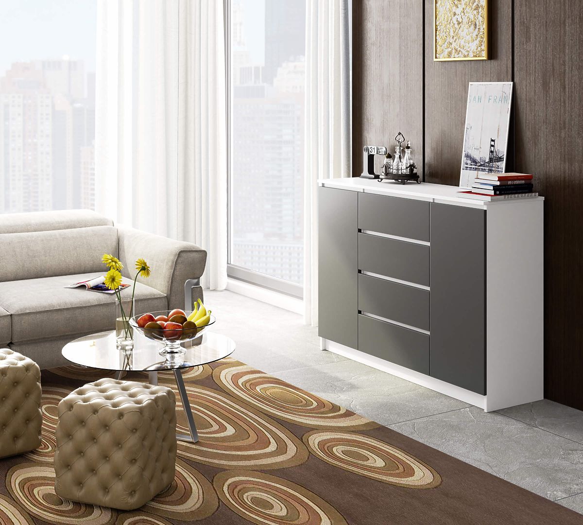 Credenza con 2 porte e 4 cassetti in bianco e grigio grafite. .. altro