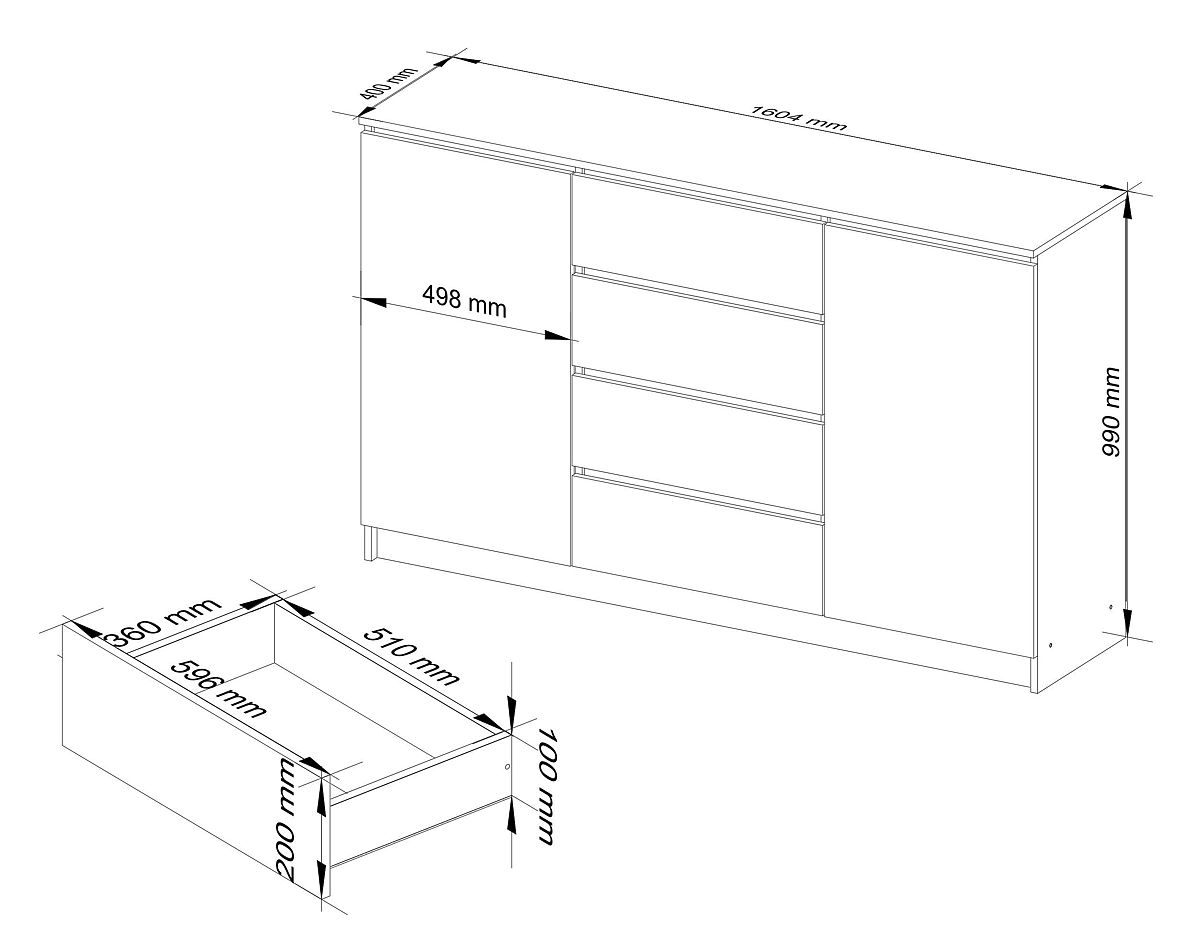 CREDENZA K160 cm 2 ANTE 4 CASSETTI