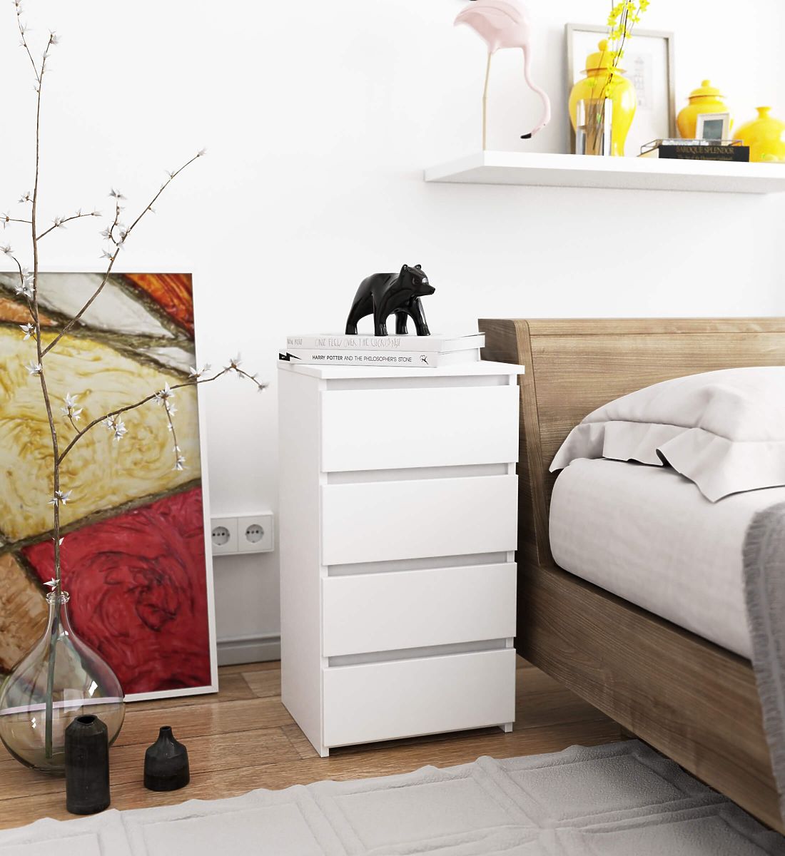 I comò sono un tipo di arredamento popolare che si posiziona accanto al letto. Sulla sua superficie si trova spesso una lampada, mentre all'interno ci sono oggetti che facilitano il riposo e il sonno. Chi cerca un comò elegante dovrebbe prestare attenzione al comò CL4 40 cm in colore bianco. Si adatterà magnificamente a qualsiasi camera da letto. Può essere posizionato anche nella stanza dei bambini.
