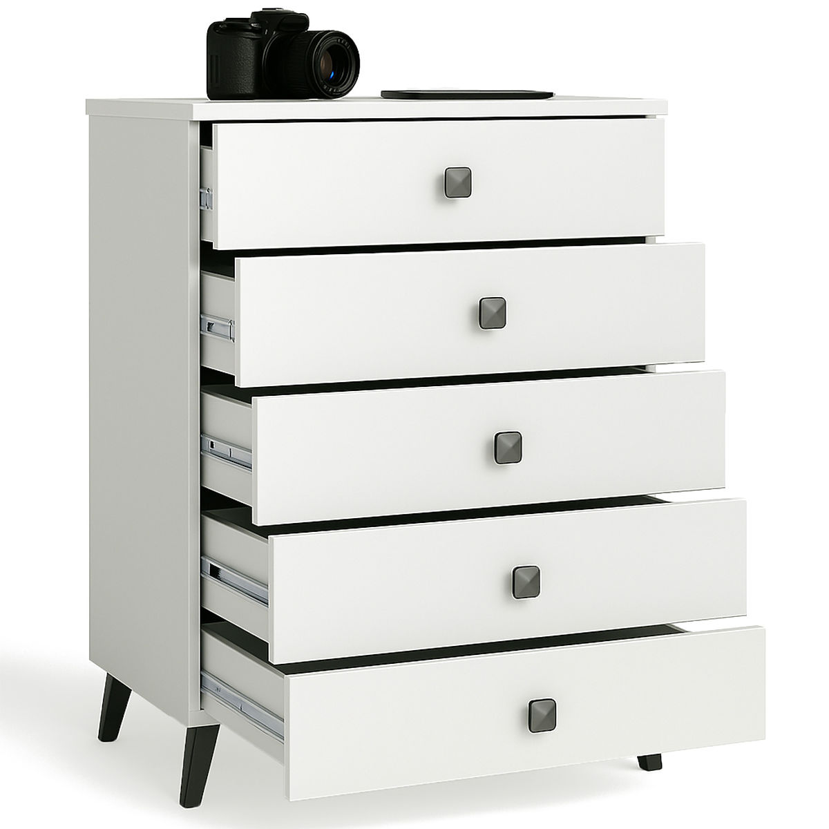 Comò moderno con 5 cassetti in bianco e nero. .. altro