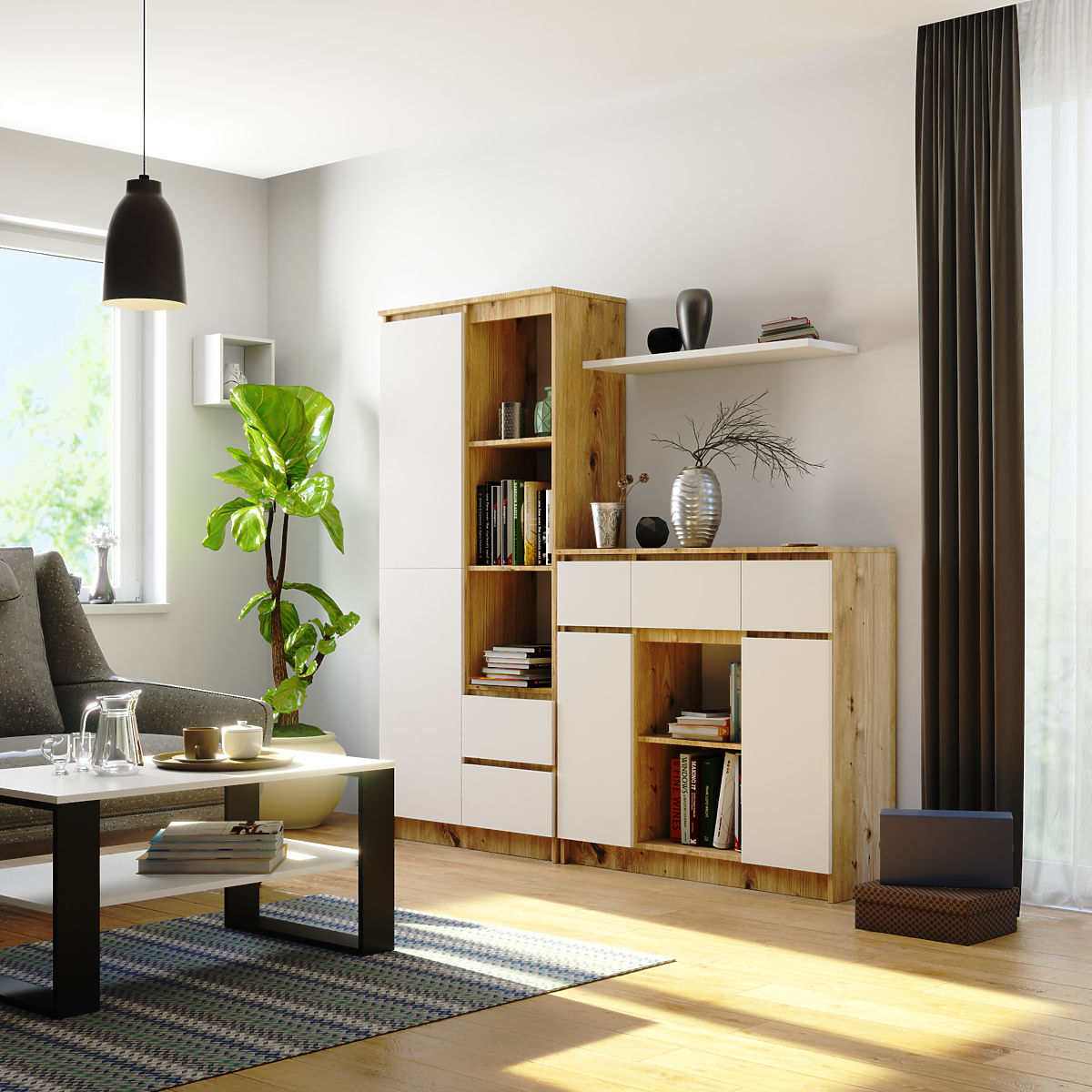 Credenza in rovere artigiano e bianco con 3 cassetti e 2 ante. .. altro