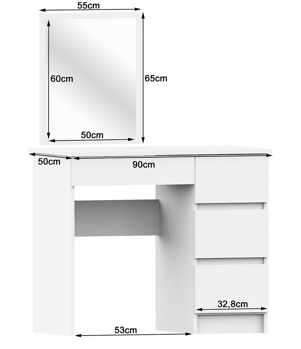 Lukahome.it » Tabelle e tavoli / Toilette tavoli / TAVOLO DA TOLETTA COSMETICO CON SPECCHIO T-6/SL 500x600 DESTRO BIANCO