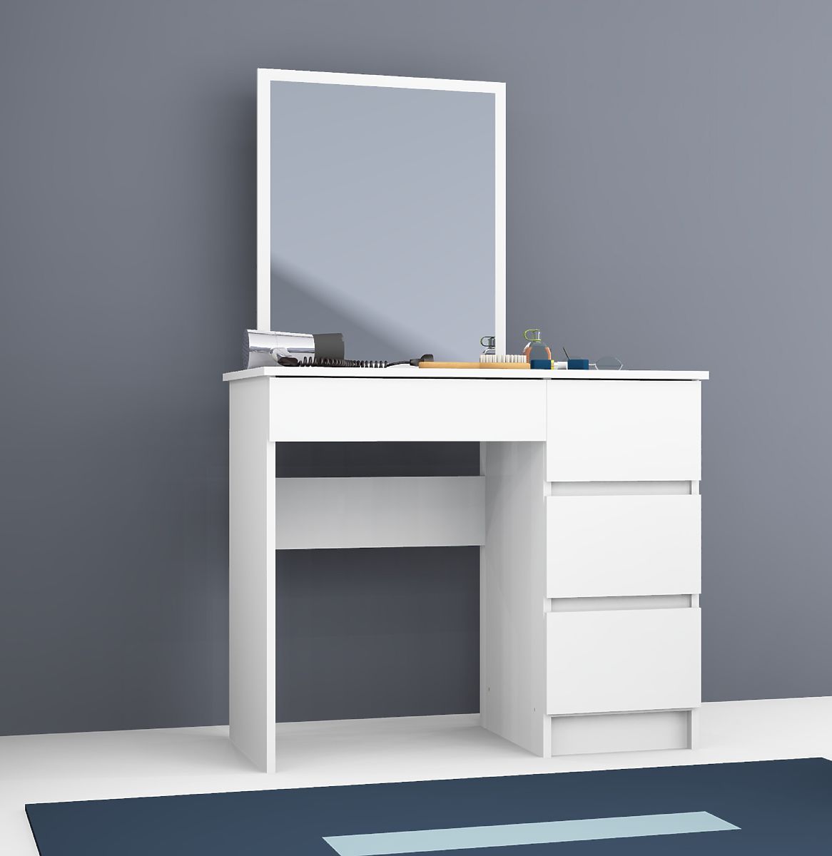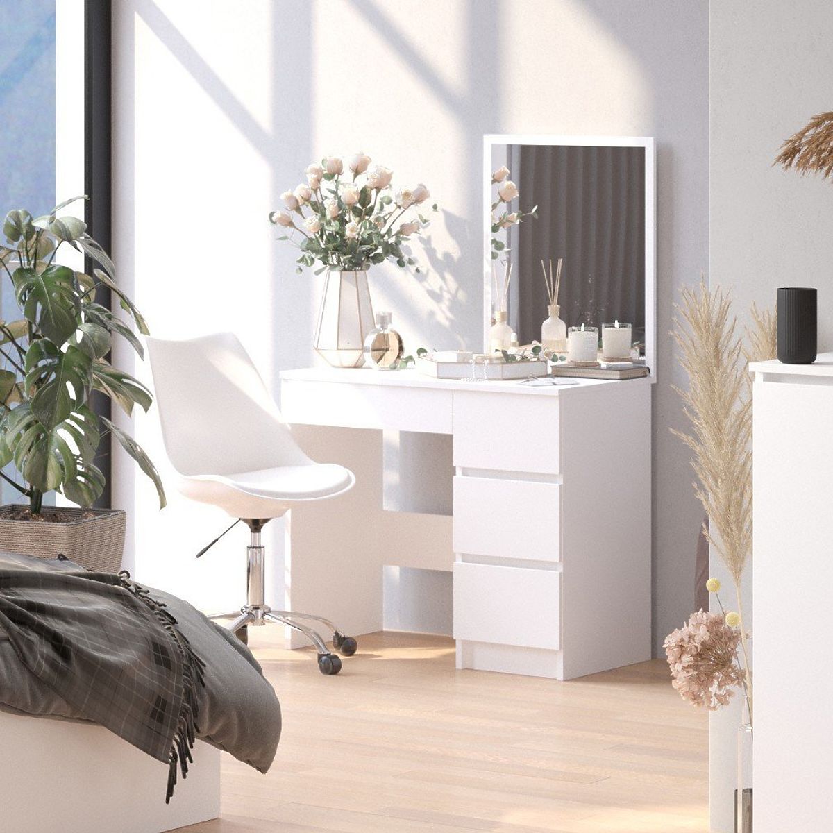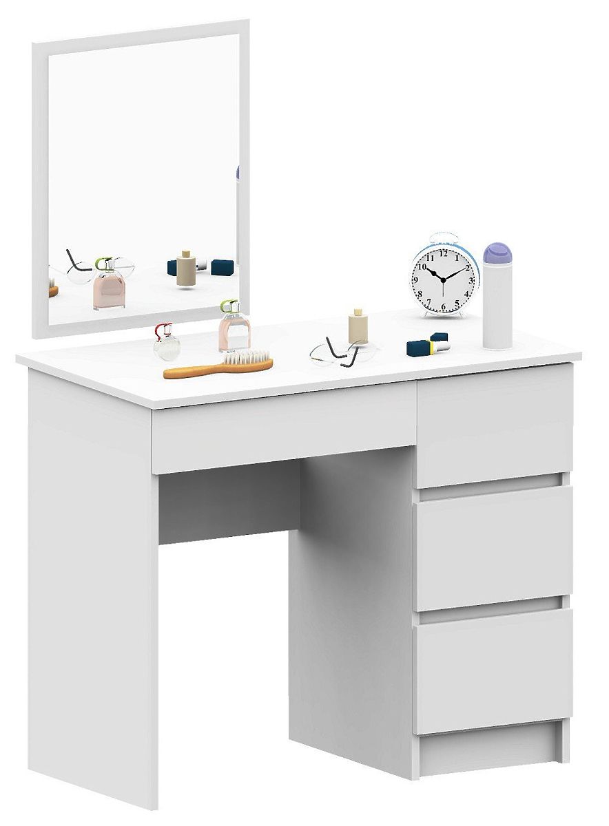 Avere un tavolo da toletta è il sogno di molte donne. Creare un angolo di bellezza ha più vantaggi di quanto si possa pensare. In primo luogo, il tavolo da toletta è un modo per utilizzare in modo altamente pratico lo spazio libero. Inoltre, consente di delimitare una certa zona per la cura e facilita il mantenimento dell'ordine in casa. Il tavolo da toletta facilita notevolmente le attività di cura non solo alla felice proprietaria, ma anche agli altri membri della famiglia che utilizzano contemporaneamente il bagno. Un tavolo da toletta ideale dovrebbe essere sia pratico che estetico. Consigliamo la scelta di un tavolo da toletta con specchio dalla nostra offerta. Il colore bianco consente un facile adattamento a molti arrangiamenti. Il tavolo da toletta può svolgere una doppia funzione - durante il giorno può facilmente trasformarsi in uno spazio di lavoro o studio, permettendo un ulteriore risparmio di spazio prezioso. Il tavolo da toletta è adatto sia per la camera da letto che per la stanza di ogni ragazza adolescente, così come per una ragazza più giovane, che sarà sicuramente entusiasta di un tale elemento di decorazione nella sua stanza.
