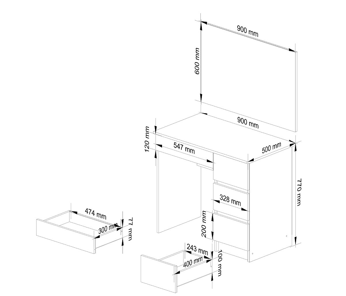 Toilette bianca con specchio per trucco con codice T-6/SL 900x600 dal sistema CLP.