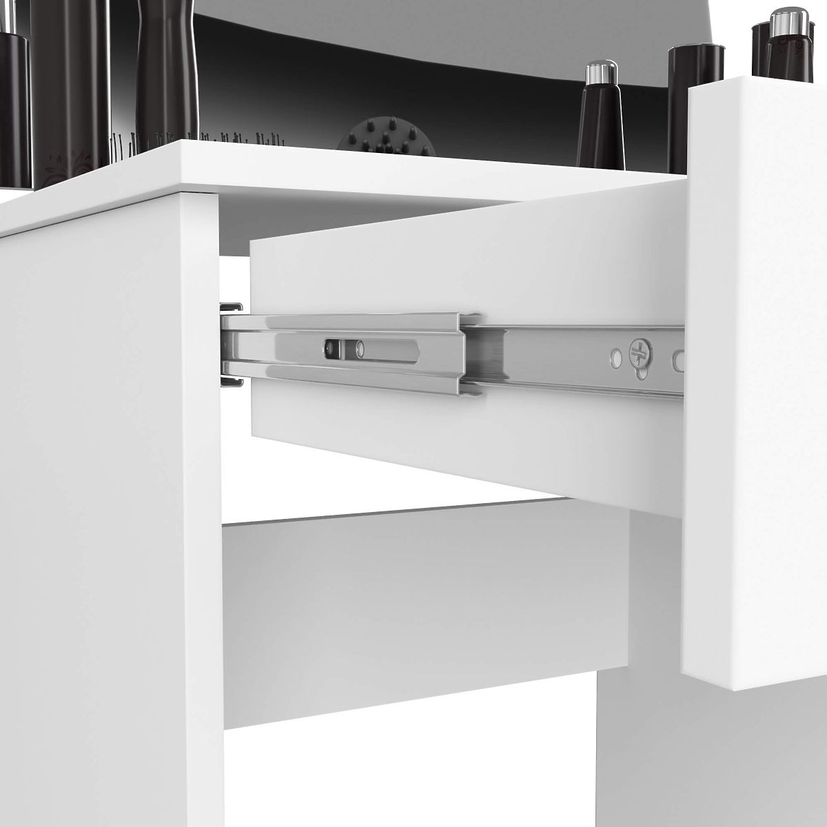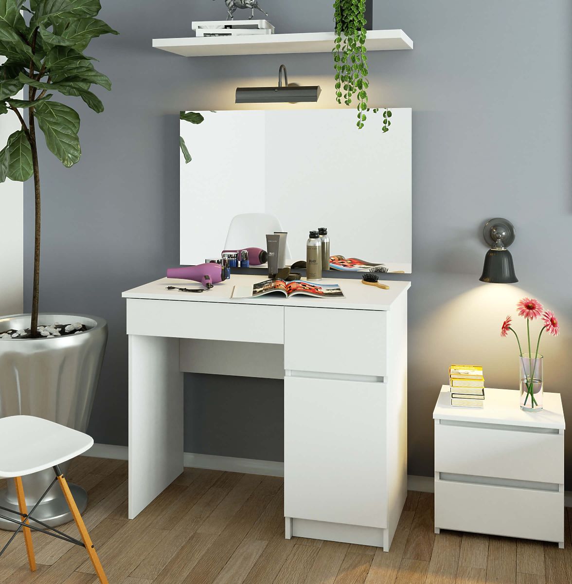 Versione compatta della toeletta per donne che desiderano truccarsi rapidamente al mattino. Soluzione destinata alla camera da letto e non solo. Le dimensioni della toeletta si adattano perfettamente anche ai saloni di bellezza.