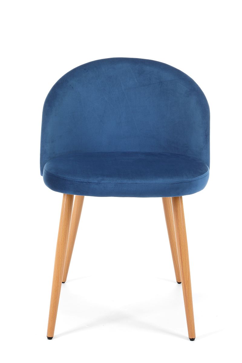 Sedia in velluto blu scuro con gambe in metallo color faggio. .. altro