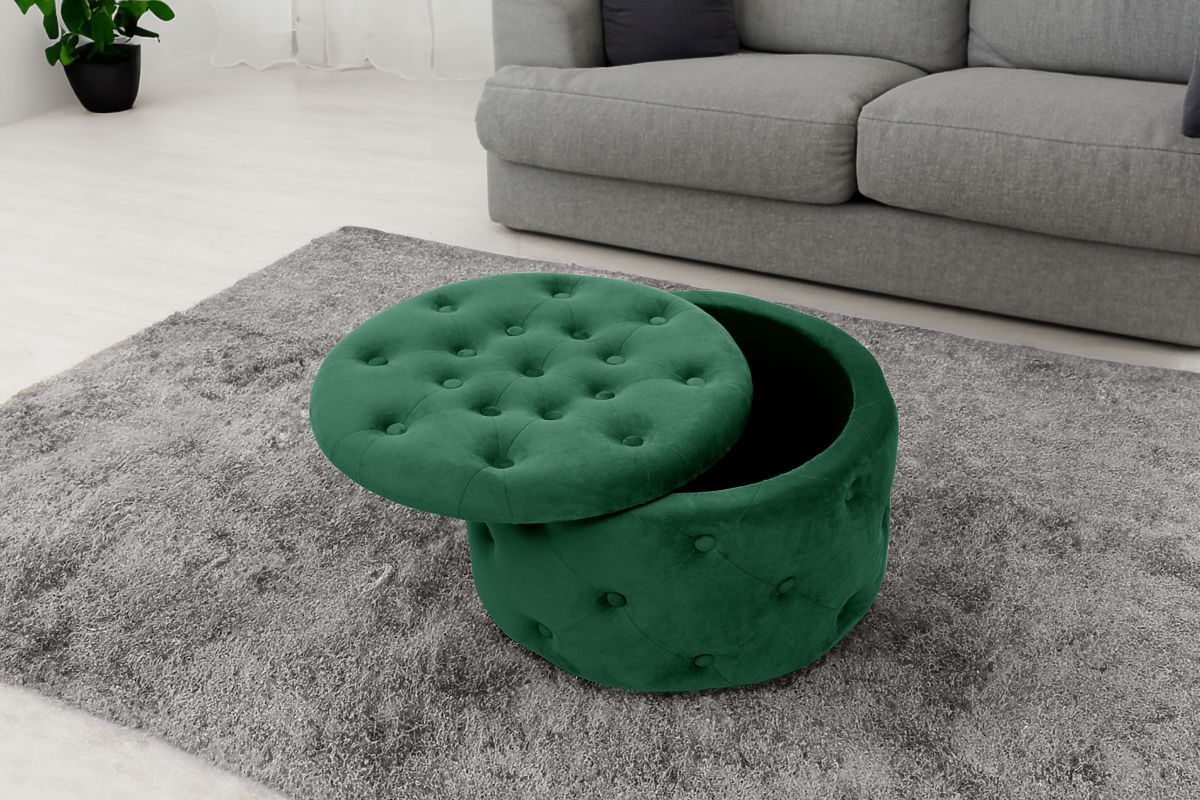 Pouf trapuntato con spazio di stoccaggio per il soggiorno.
