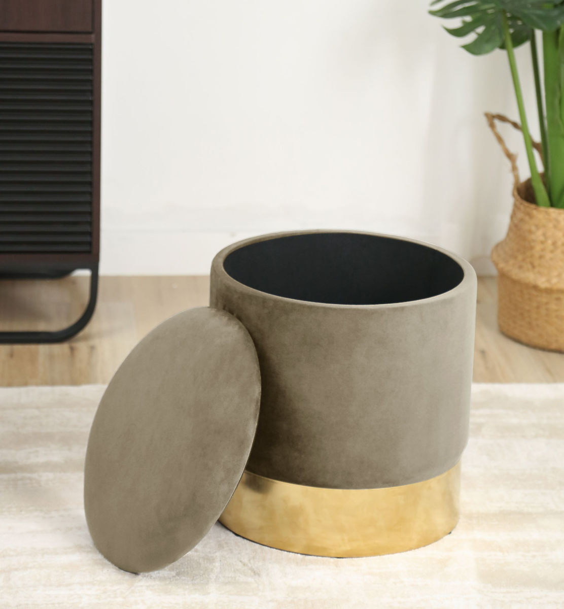 Pouf in velluto con gambe dorate e spazio di archiviazione. .. altro
