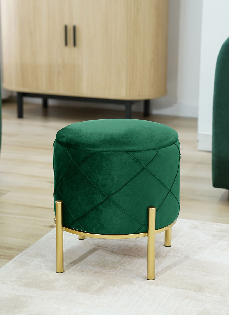 Il poggiapiedi o pouf è un ottimo complemento per il soggiorno o la camera da letto. Grazie ad esso, i piedi stanchi dopo una giornata di cammino possono riposare, e se il pouf è realizzato in morbido velluto, ciò accentua ulteriormente la sensazione di relax. L'aspetto moderno è completato da gambe in metallo dipinte in oro, un colore molto di moda quest'anno. Il coperchio apribile offre accesso allo spazio di archiviazione, dove è possibile riporre oggetti non necessari per l'uso quotidiano.Specifiche: