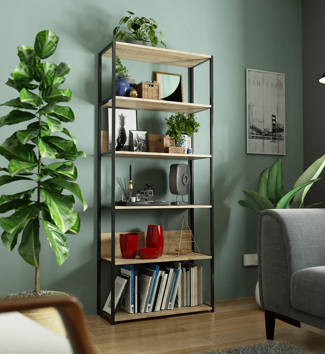 Lo scaffale loft in metallo è un mobile pratico e moderno, adatto sia per il soggiorno che per l'ufficio. Scaffale con telaio in metallo nero e 6 ripiani in colore rovere sonoma. I ripiani dello scaffale sono realizzati in pannello laminato di spessore 16 mm. È un materiale durevole e resistente, caratterizzato da un'elevata resistenza all'usura. Inoltre, i bordi sono protetti da un bordo ABS, il che garantisce che il mobile mantenga un aspetto ottimale anche con un uso quotidiano molto intenso. Lo scaffale è dotato di 6 ripiani su cui è possibile posizionare oggetti da esporre o avere a portata di mano. Nel complesso, appare molto elegante e moderno.