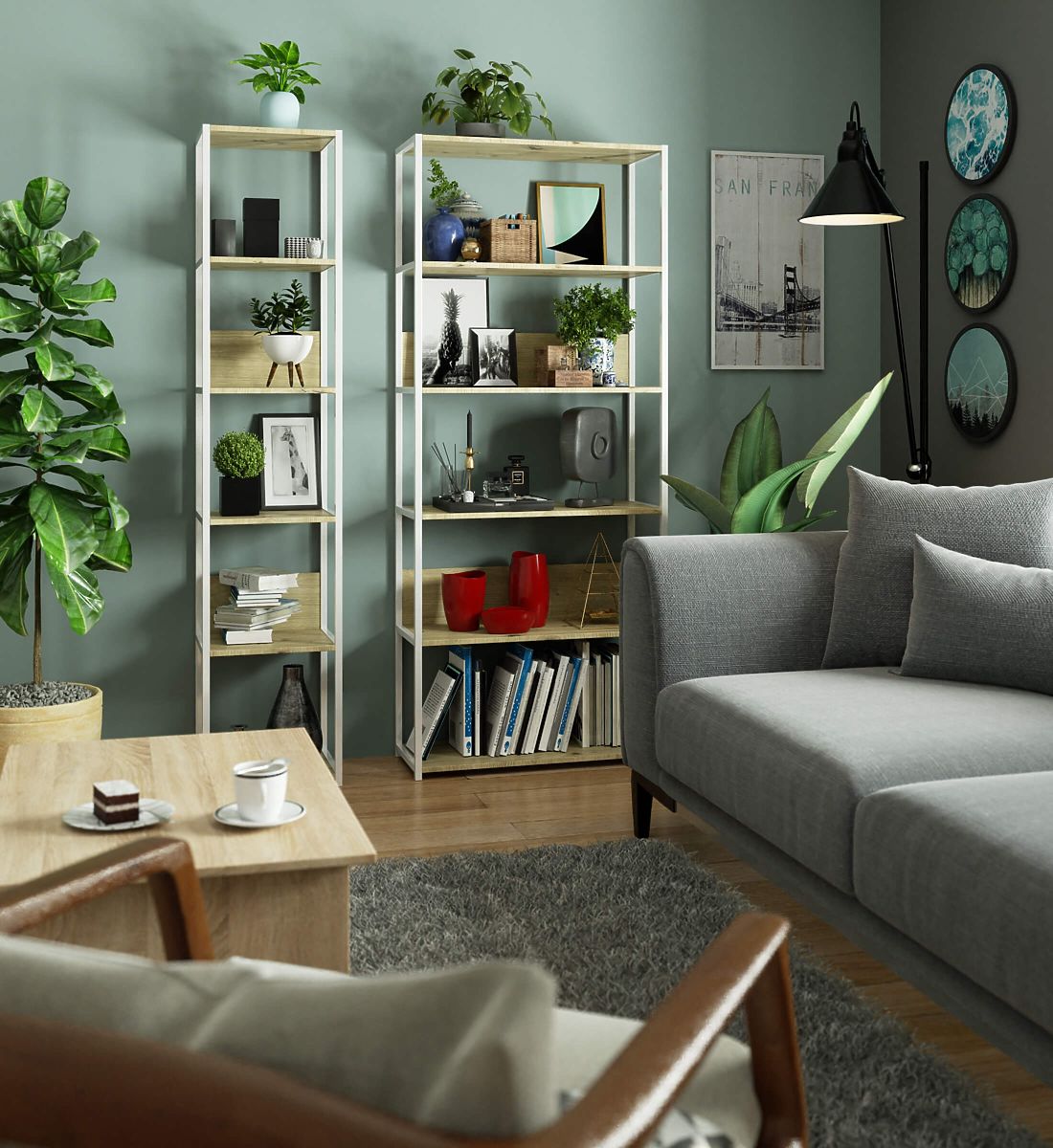 Lo scaffale loft in metallo è un mobile pratico e moderno, adatto sia per il soggiorno che per l'ufficio. Scaffale con struttura in metallo bianco e 6 ripiani in colore rovere artigianale. I ripiani dello scaffale sono realizzati in pannello laminato di spessore 16 mm. È un materiale durevole e resistente, caratterizzato da un'elevata resistenza all'usura. I bordi sono inoltre protetti da un bordo ABS, garantendo che il mobile mantenga un aspetto gradevole anche con un uso quotidiano molto intenso. Lo scaffale è dotato di 6 ripiani su cui è possibile posizionare oggetti da esporre o avere semplicemente a portata di mano. Nel complesso, appare molto elegante e moderno.