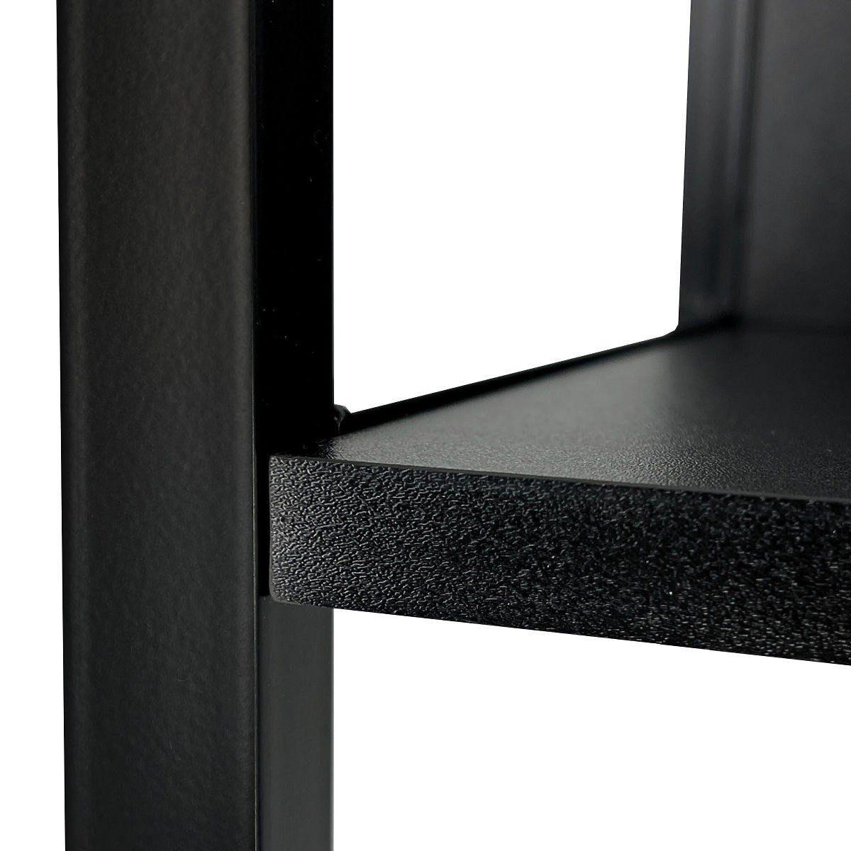 Profondità - 32 cmLo scaffale industriale in metallo è un mobile pratico e moderno, adatto sia per il soggiorno che per l'ufficio. Telaio di colore nero. I ripiani dello scaffale sono realizzati in pannello laminato di spessore 16 mm di colore nero. È un materiale durevole e resistente, caratterizzato da un'elevata resistenza all'abrasione. I bordi sono ulteriormente protetti con bordo ABS, garantendo che il mobile mantenga un aspetto ottimale anche con un uso quotidiano molto intenso. Complessivamente, ha un aspetto molto moderno.